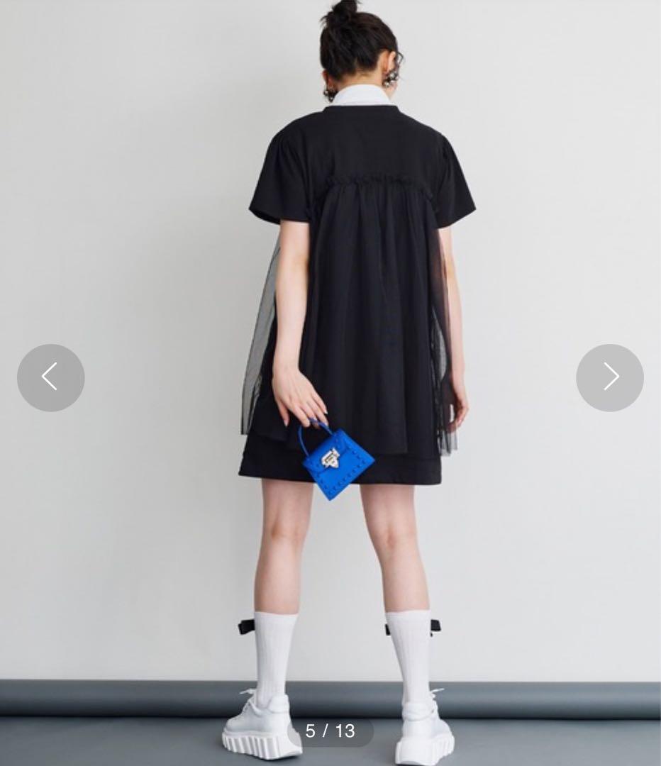 シンプルなワンカラーでもチュールをプラスすることで、さりげないデザイン性が目を惹くアイテムに。