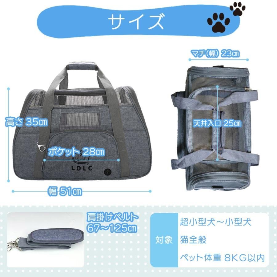 【ブラック】ペットキャリー 折りたたみ バッグ 2way ショルダー グレー/ブラウン/ブラック/ブルー 8kg以下 猫 犬 メッシュ 軽量