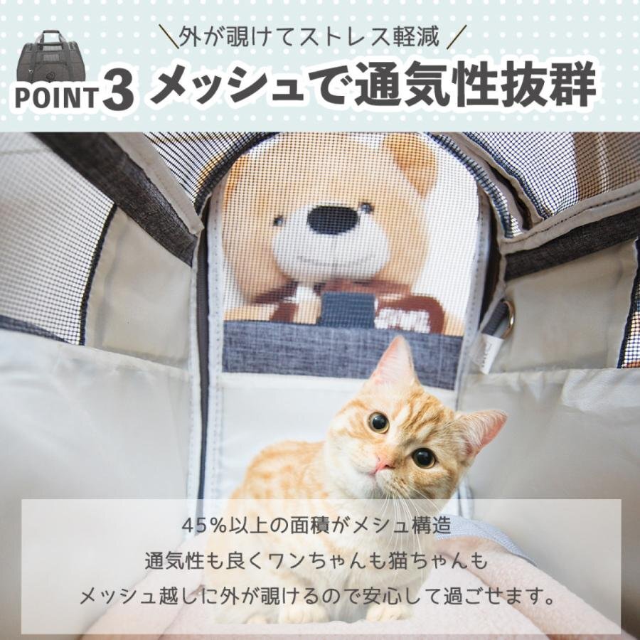 ▼拡張型で広くなり、少しでもストレスを減らせるようにとアイディア満載のペットキャリー