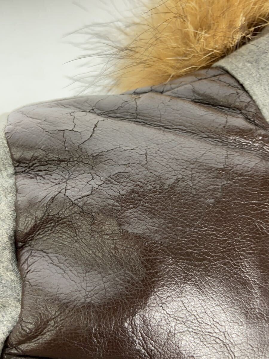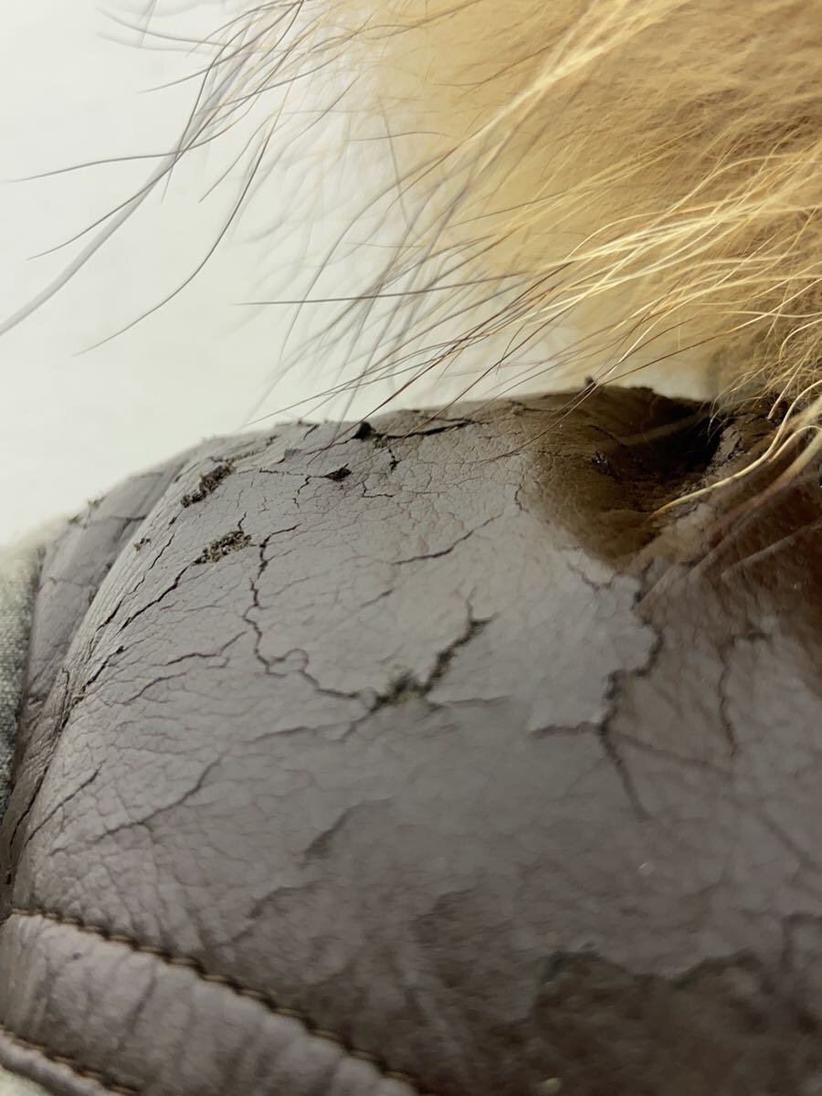 全体的に小さなシミ汚れが見受けられ、肩やポケットの合皮部分に剥がれは見受けられますが、ご着用には差し支えないお品物でございます。(写真でご確認ください。)※商品には、汚れの見落とし、一部付属の欠品などある場合がございます。また店頭でも販売を行っているため状態の変化がある場合がございます。写真以外で気になる点は店舗までご連絡ください。 |