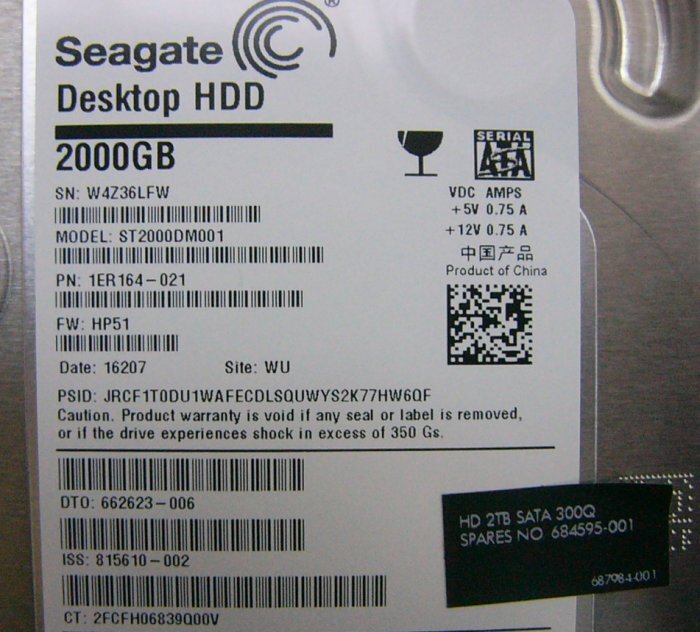 Seagate ST2000DM001 2TB 7200rpm SATA です