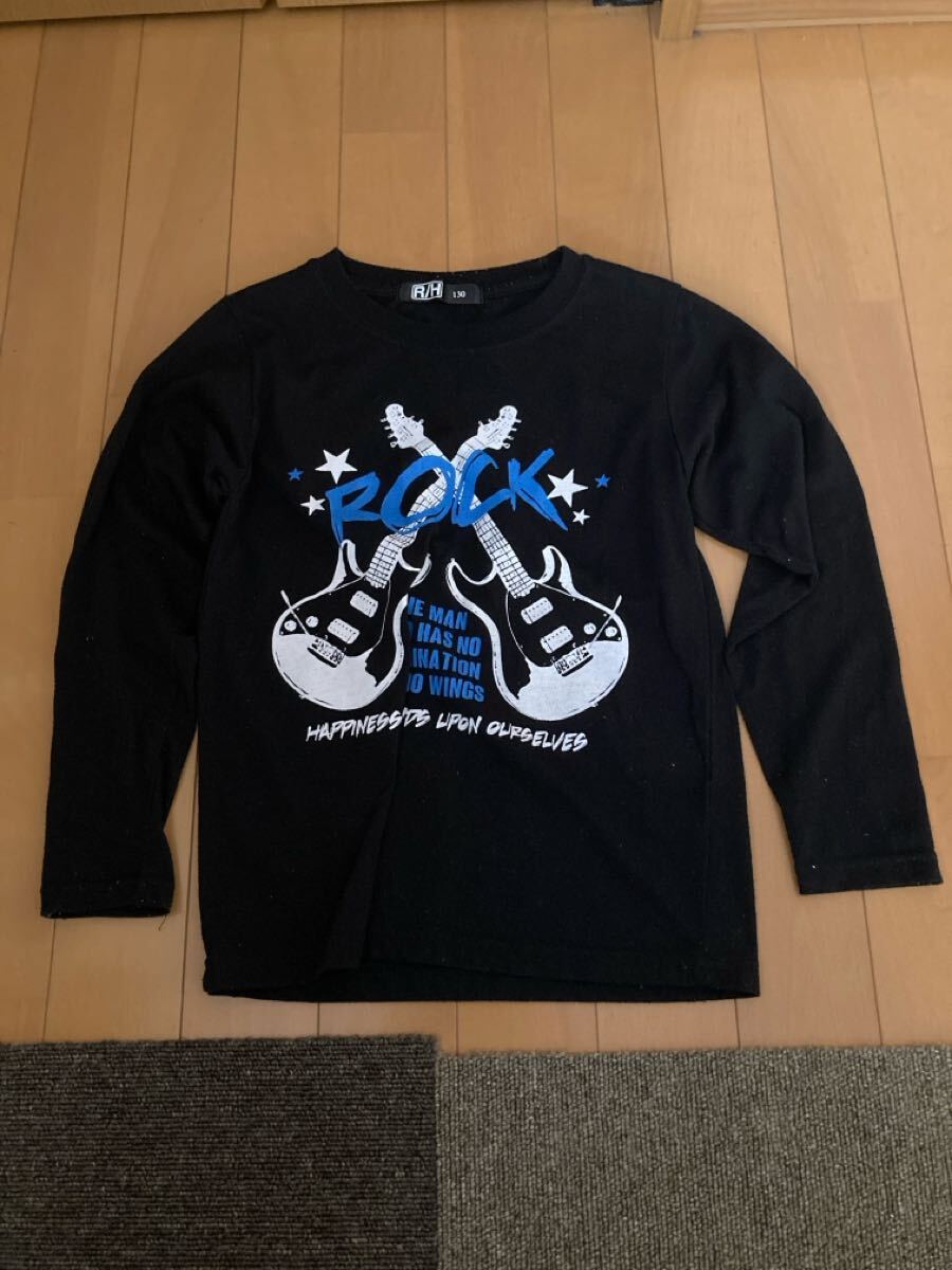 【送料無料】キッズ 長袖Tシャツ サイズ130 中古 ロング Tシャツ 黒 ロンT ブラック プリント