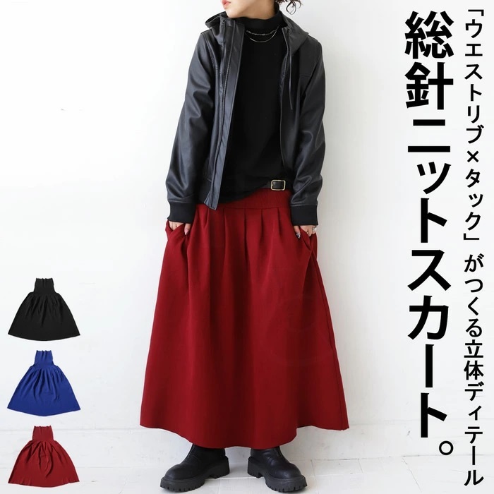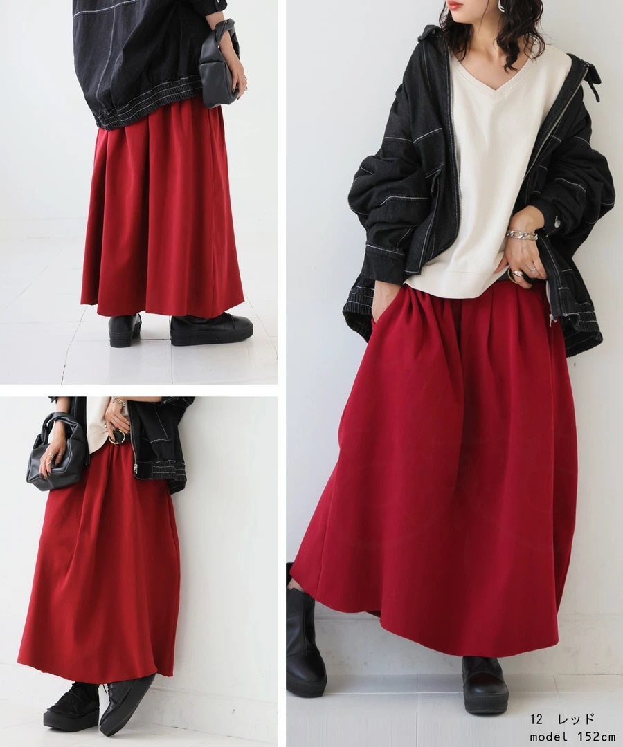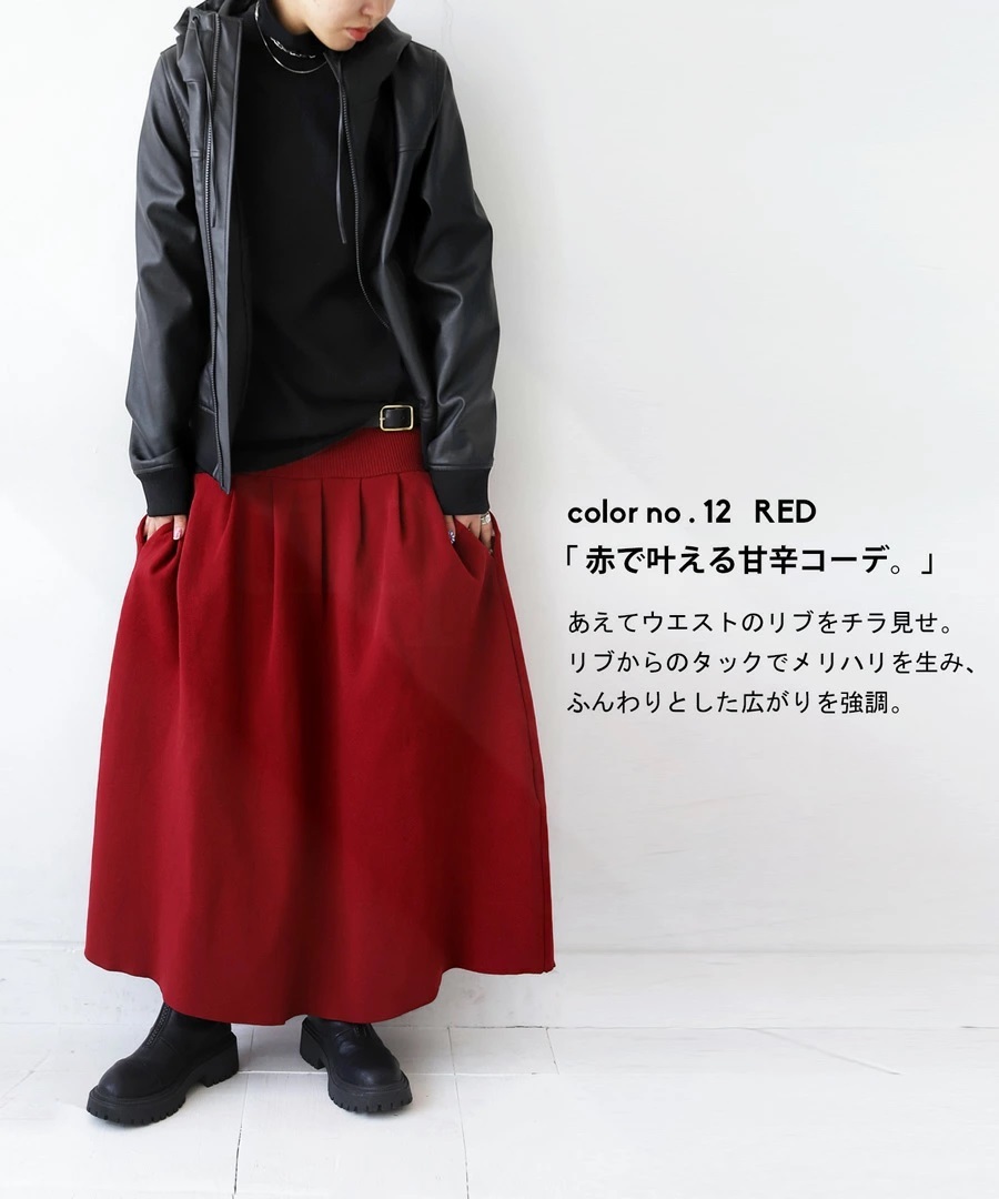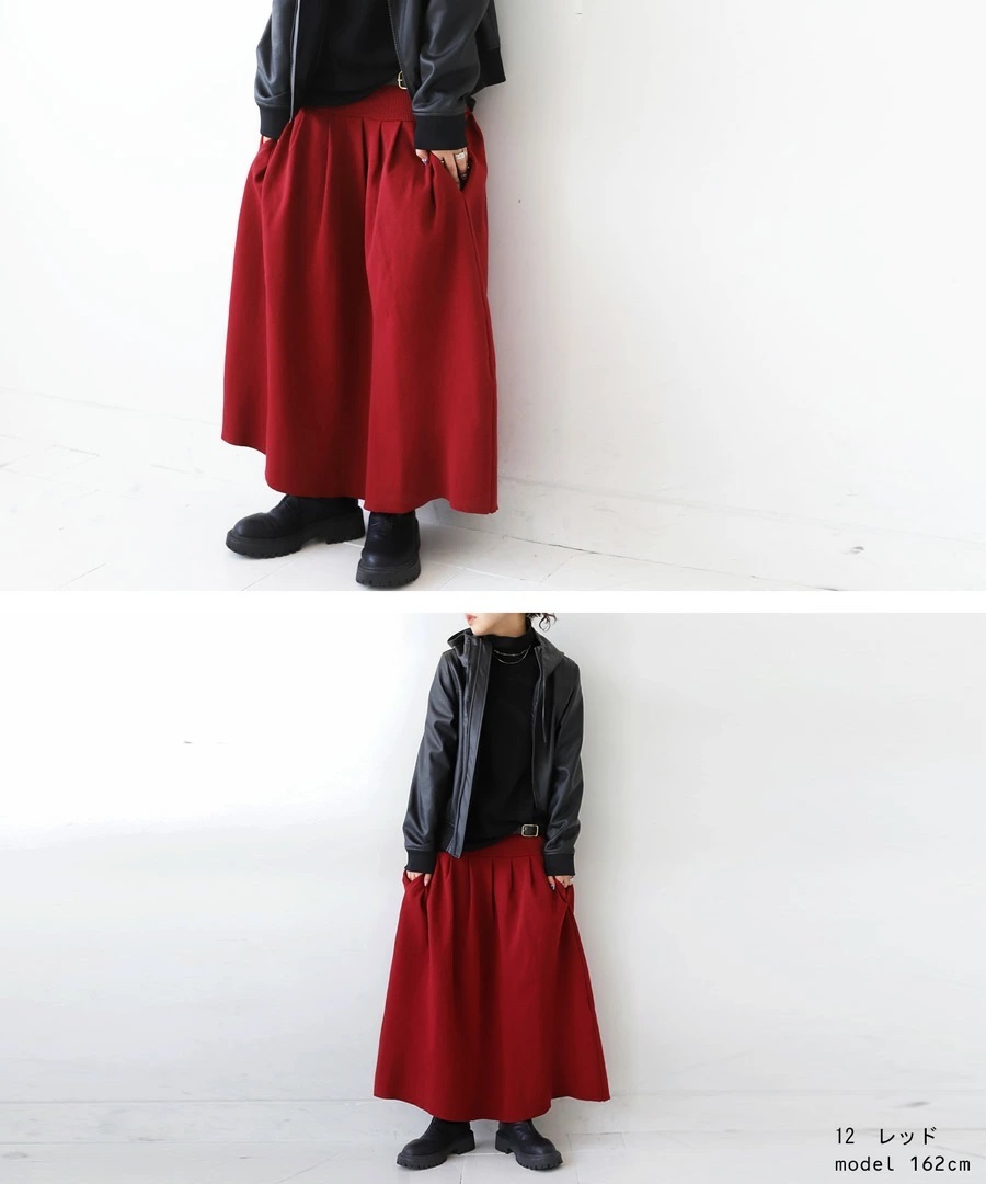 個性派ブランドantiqua★アンティカ正規品。 「目の詰まった」なびくようなハイゲージ。 スリムに見える総針ニットスカート。 ウエストを変形させることで印象を変えることも。 巧みなタック使いで立体シルエット生むニットスカートです。 長めのウエストリブデザインでアレンジ自由自在。 圧迫感のない穿き心地でマタニティウエアとしても◎ タック使いで立体的なフレアシルエット。 両サイドには便利なポケット付き。 綺麗な表情と軽さが魅力の素材感。 驚きの軽さとハリ感を実現。 伸縮性抜群の生地感。 お色は完売のレッド系。 ニット生地。程よく伸縮します。ポケットあり。 新品タグ付き。定価4,950円。 ■サイズ■F・丈(中心)102、ウエスト(全ゴム伸縮あり)64、 ヒップ92、裾周り186 ■素材■ポリエステル100%素材。 | |||