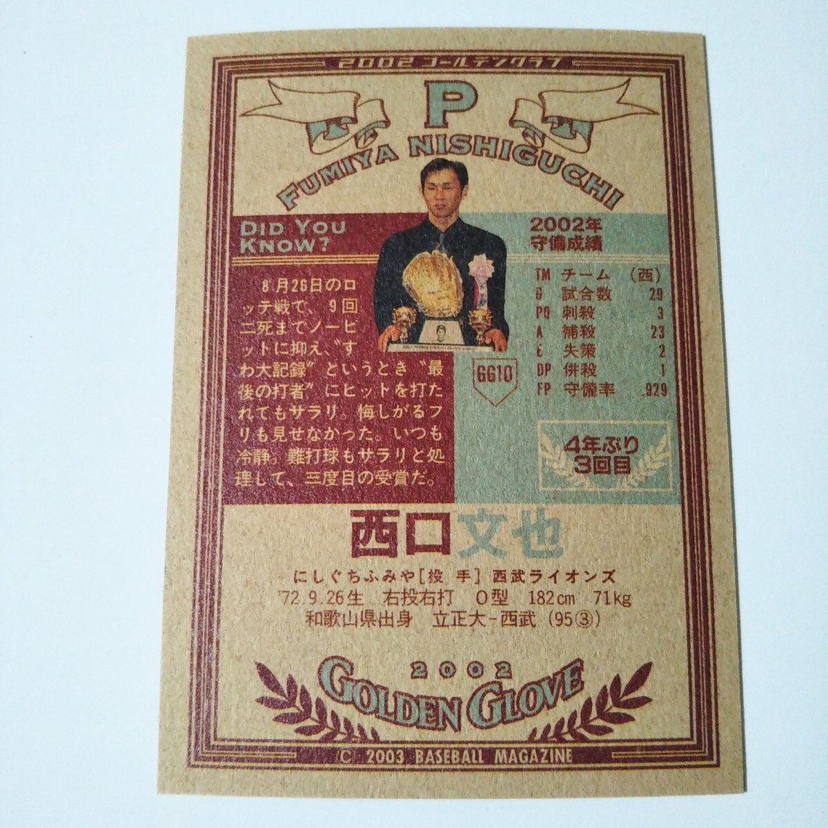 BBM2003 1st 西武 西口文也 インサートカード ゴールデングラブ GG10