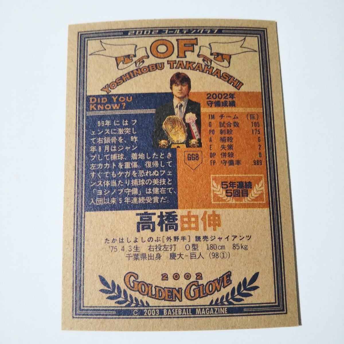 BBM2003 1st 巨人 高橋由伸 インサートカード ゴールデングラブ GG8
