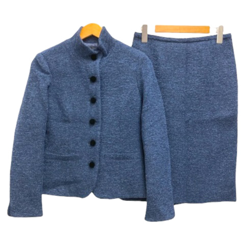 ダーマコレクション dama collection セットアップ ジャケット スカート ウール混 長袖 膝丈 無地 9AR 紺 ネイビー レディース