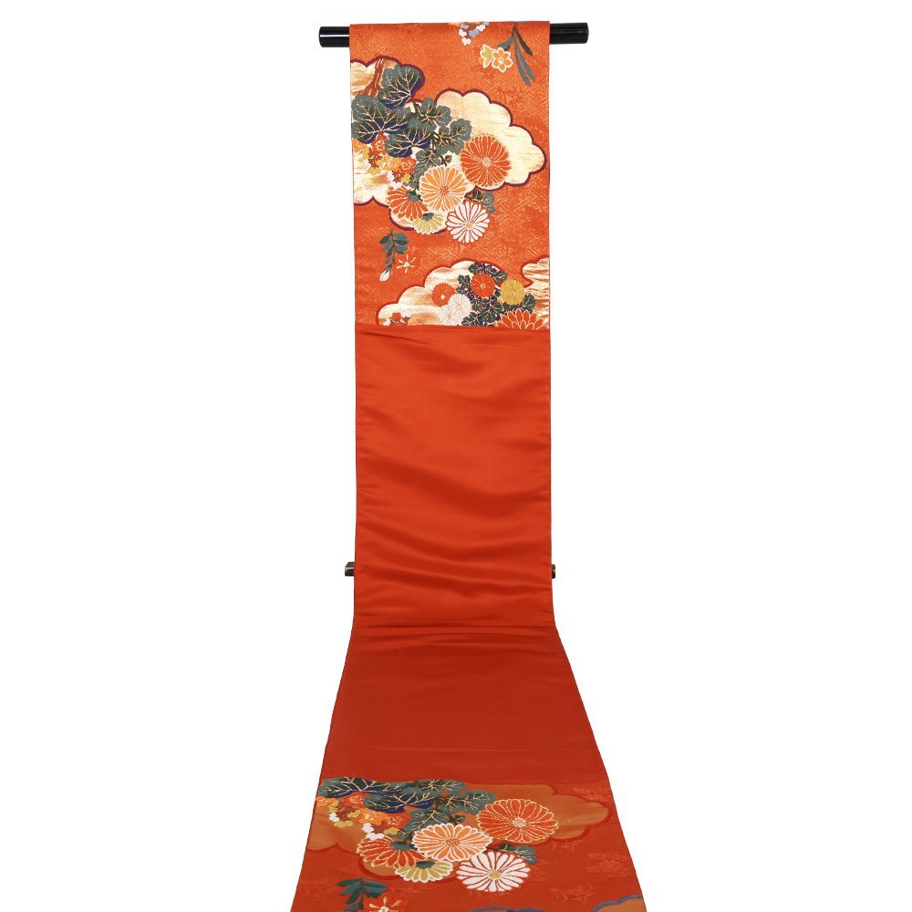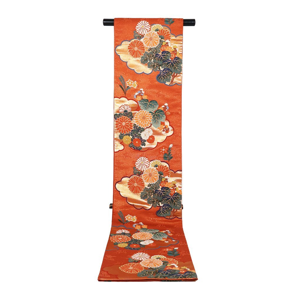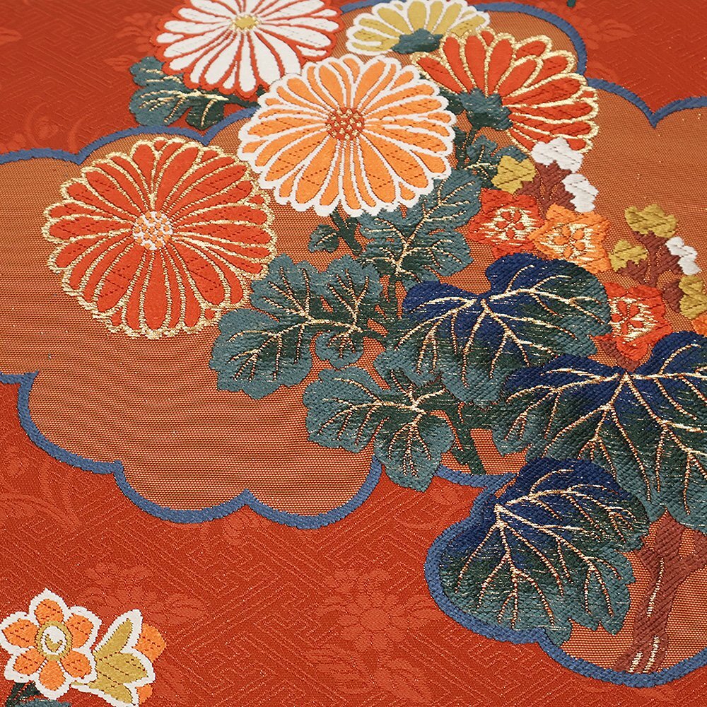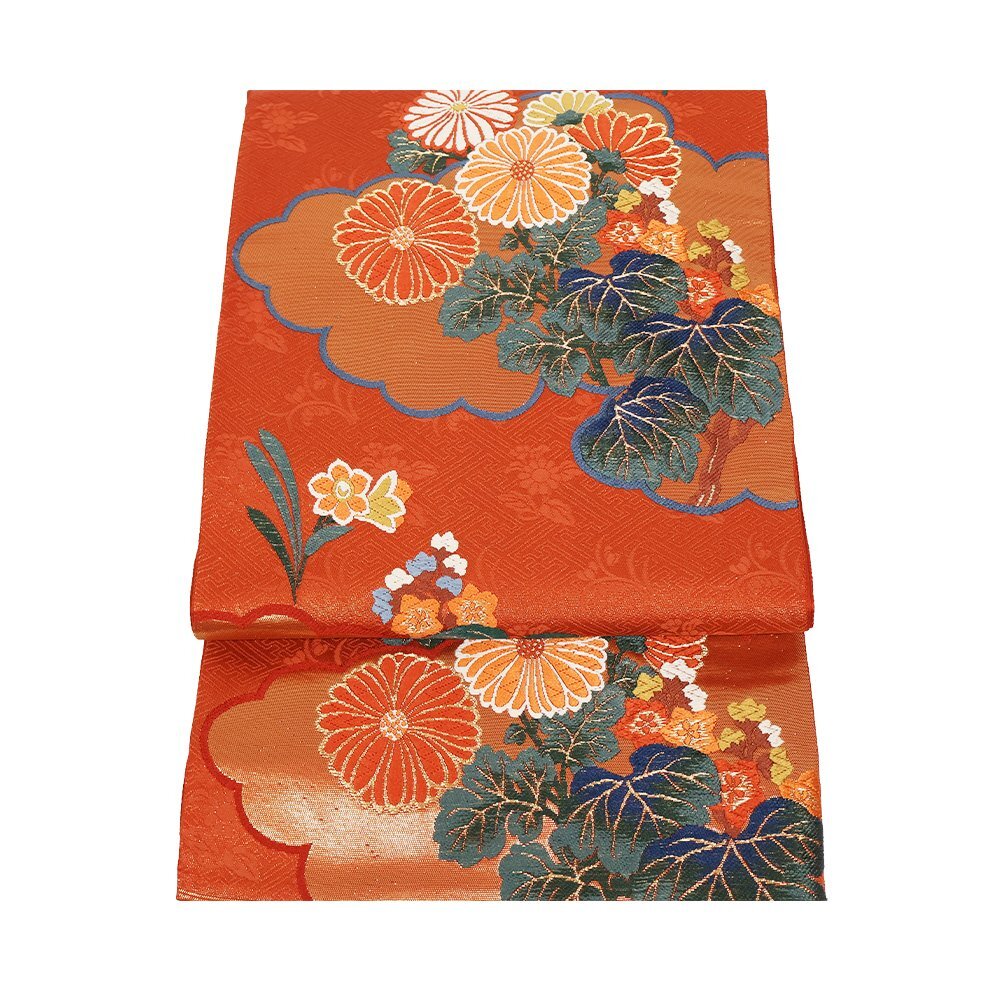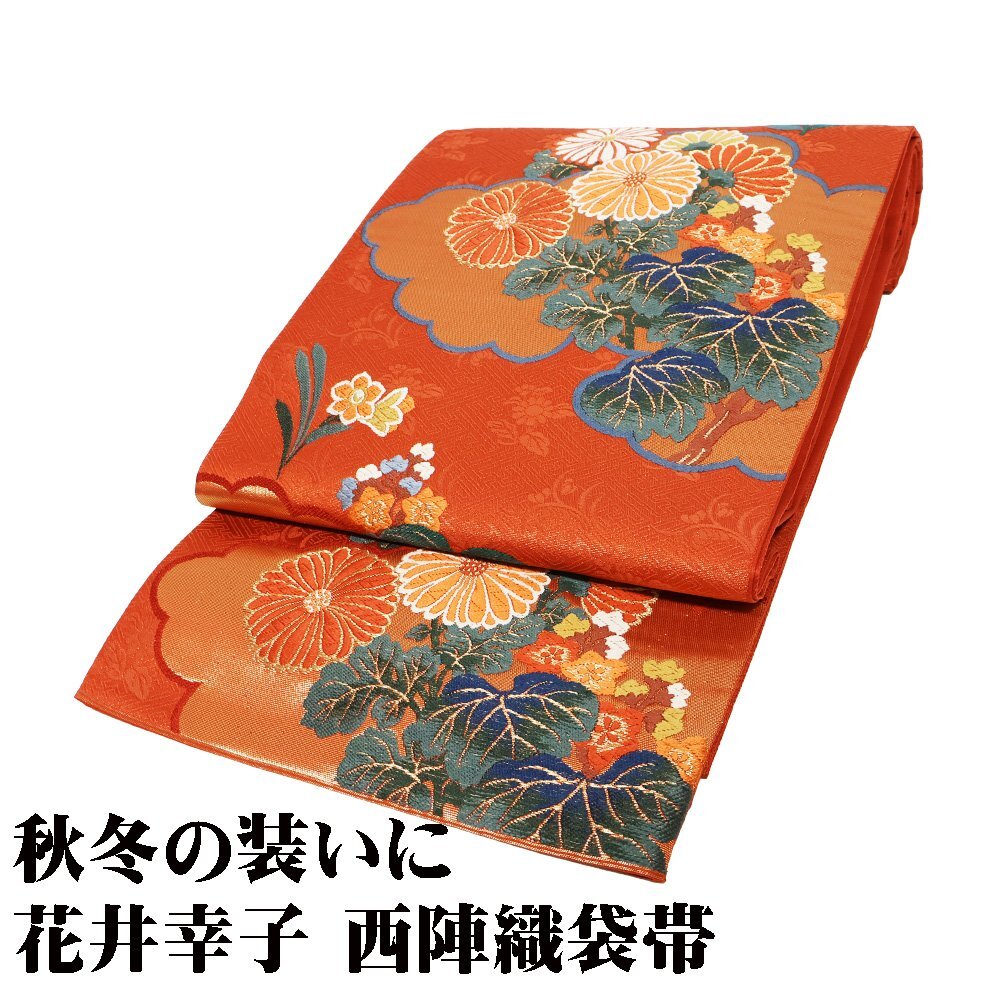 | 花井幸子ブランド 西陣織袋帯 赤茶地 菊 仕立て上がり |