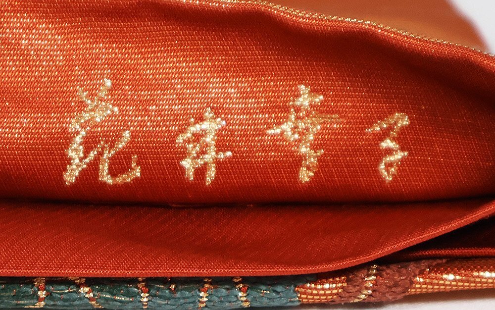 花井幸子ブランド 西陣織袋帯 赤茶地 菊 (写真では上手く色が出ない場合があります。ご了承下さい) ※お使いのディスプレイの種類や設定の差により 実物の色と画像の色が少々異なることもございます。 |