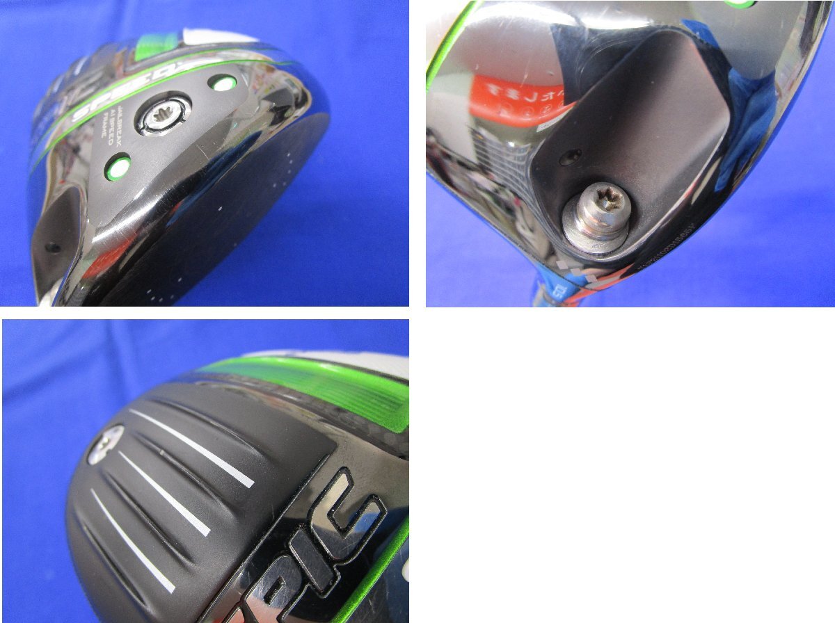 ■クラブスペック ・番手:1W ・ロフト角:10.5度 ・クラブ長:45.75インチ ・バランス:D-2 ・クラブ重量:314g ・シャフト:Speeder 661 EVOLUTION※リシャフト ・硬さ:X ・グリップ:キャロウェイラバー※リグリップ ・ヘッドカバー:無し ・レンチ:無し ※スペックは実測値ですので誤差はご了承ください。 ※グリップは外して、延長やカットの確認はしていません。 ■クラブ状態 中古品です。 ※ヘッド装着ウェイトはフェース側6グラム、後方に2グラムが装着されています。装着ウェイトは純正外になります※ ・ソールは当たり傷、擦れ傷、線傷、ネジ穴部分にサビ痕があります。 ・フェースは当たり傷、擦れ傷があります。 ・クラウン、クラウン周は当たり傷、擦れ傷、塗装剥げ傷があります。 ・ソケットは小傷、擦れ傷、擦れ剥げ傷があります。 ・シャフトは小傷、擦れ傷、線傷があります。 ・グリップはキャロウェイラバーになります。擦り減りがあります。 | |||