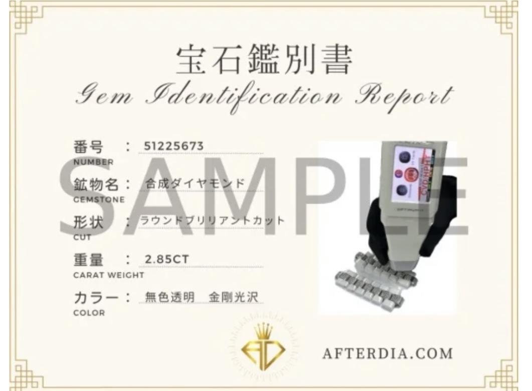 ダイヤモンドと同一の構造を持ち、プロの鑑定士であっても識別できず、専用の機械の助けを借りて初めて、天然ダイヤモンドとの違いを特定することができます。
