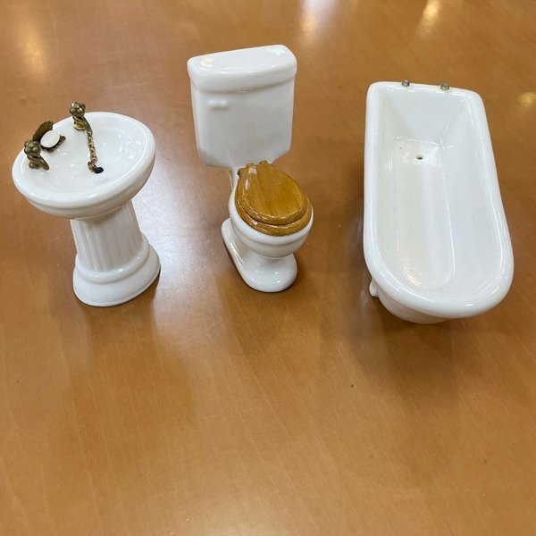 | 品名 | ドールハウス ◆ ミニチュア 陶器 バスセット ◆ トイレ 洗面台 バス お風呂 レトロ ドールハウス 小物 オブジェ |