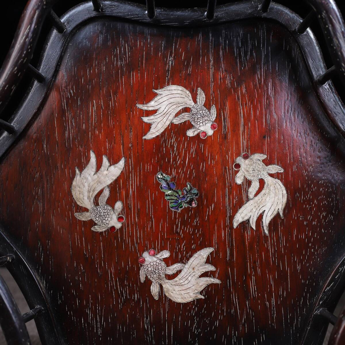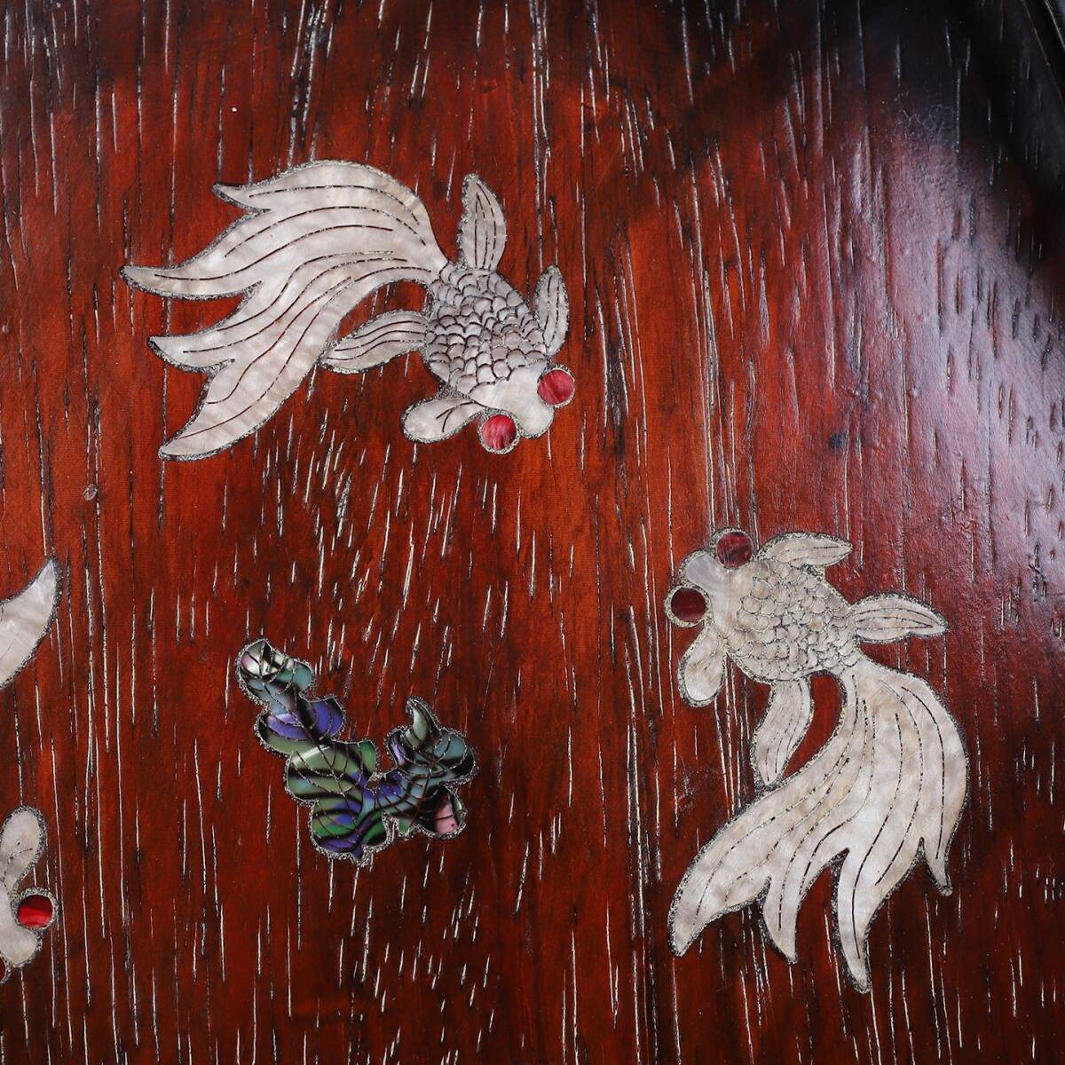 【超珍館蔵】紅木製 細密彫 貝殼嵌 年年有餘紋 茶盤 置物 古賞物 古美術品 稀少珍蔵品