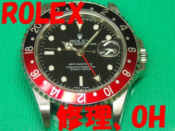 11,ロレックスGMTマスターⅡ赤/黒ベゼルモデルをOH、修理整備致します! (コピー,改造品不可)軽磨き仕上げ、防水テスト付で¥19780~