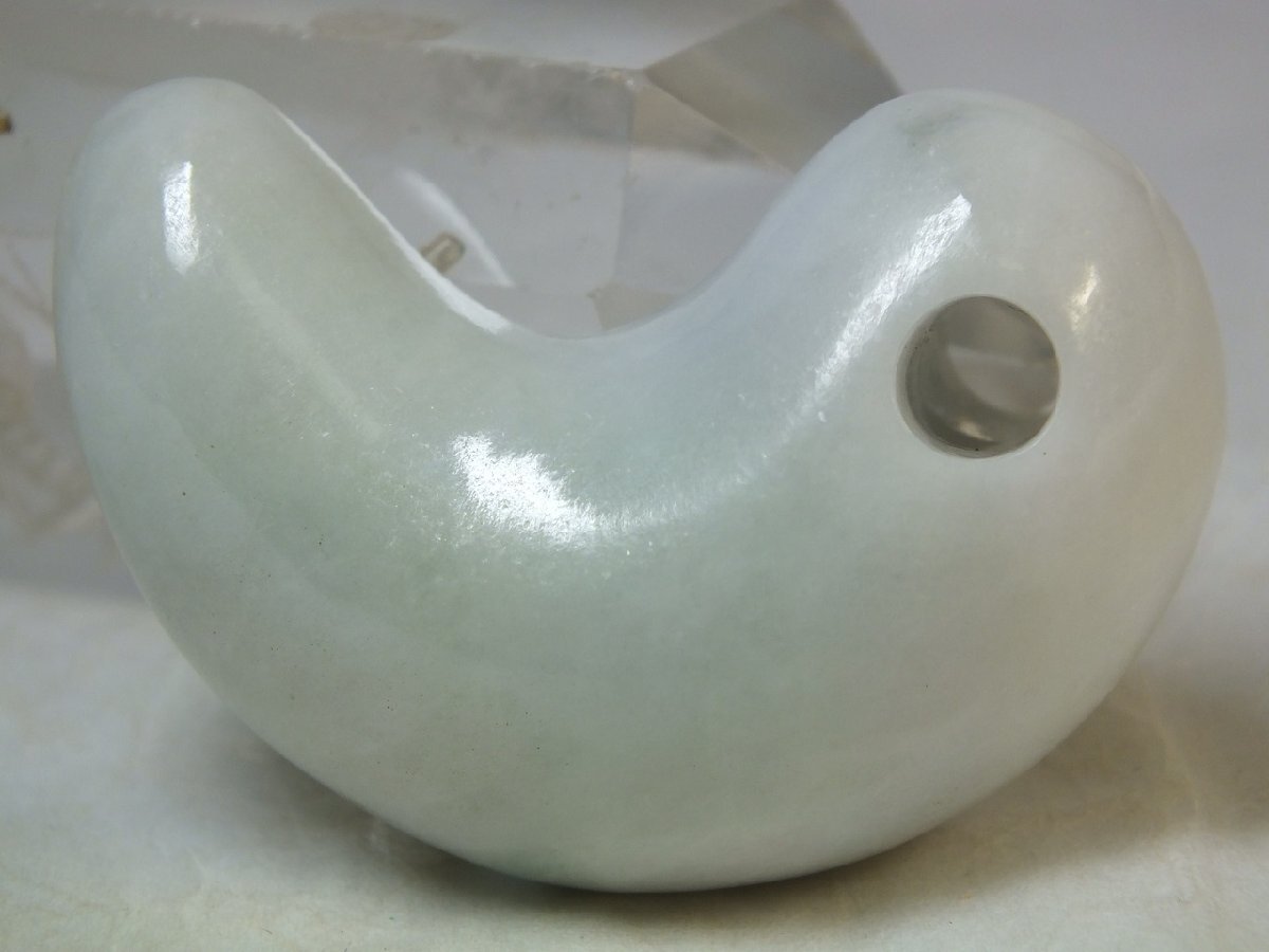 ▲商品説明▲ | サイズ:50×33×厚23mm 重さ:61.7g 糸魚川翡翠は日本翡翠独特な落ち着いた石質で、最近では入手困難になりつつある希少品です。石コレクションやアクセ作り、下げ飾り等に。 ※当方の糸魚川翡翠は、新潟のヒスイ海岸に打ち上げられた小翡翠です。地元の職人さんにより、手磨きで作られた貴重な勾玉で、当サイトでも数に限りがある人気商品です。 ☆商品につきましては注意を払った検品を行っておりますが、稀に石の表面に彫りとは違うクラック状の筋や窪みが見受けられる場合が御座います。それは石本来の石紋で傷ではありません(割れが生じ易いヒビではありません)。返品の対象にはなりませんのでその旨御了承の上、ご検討下さい。 |