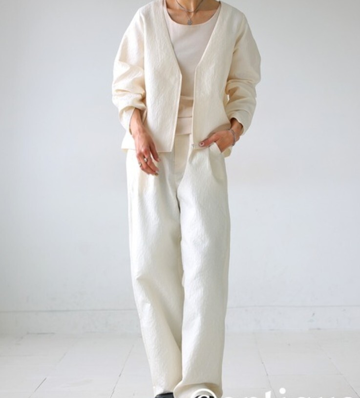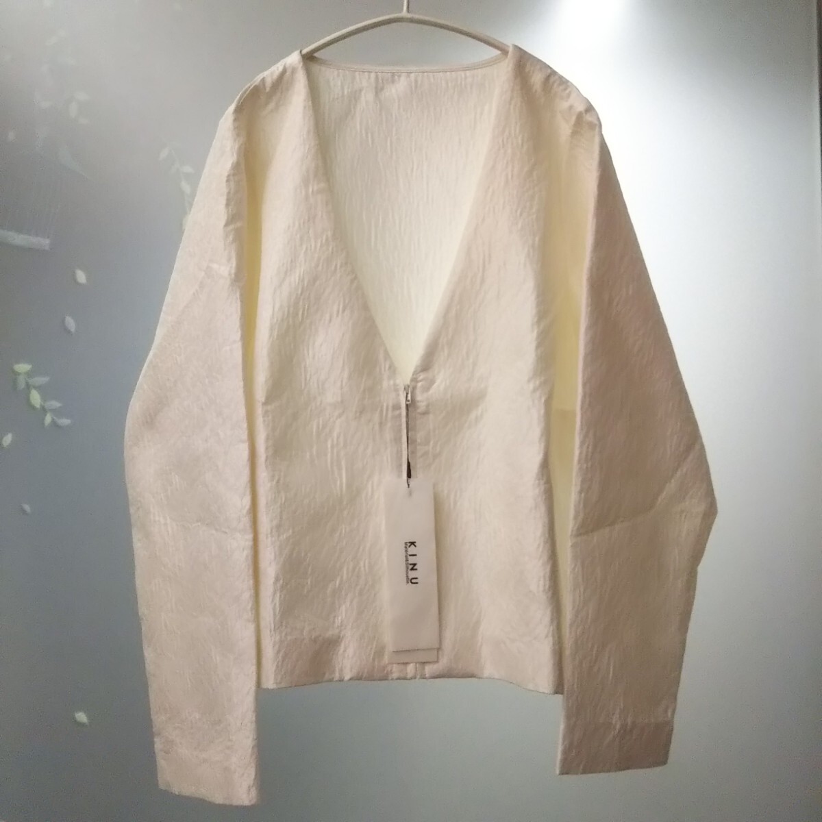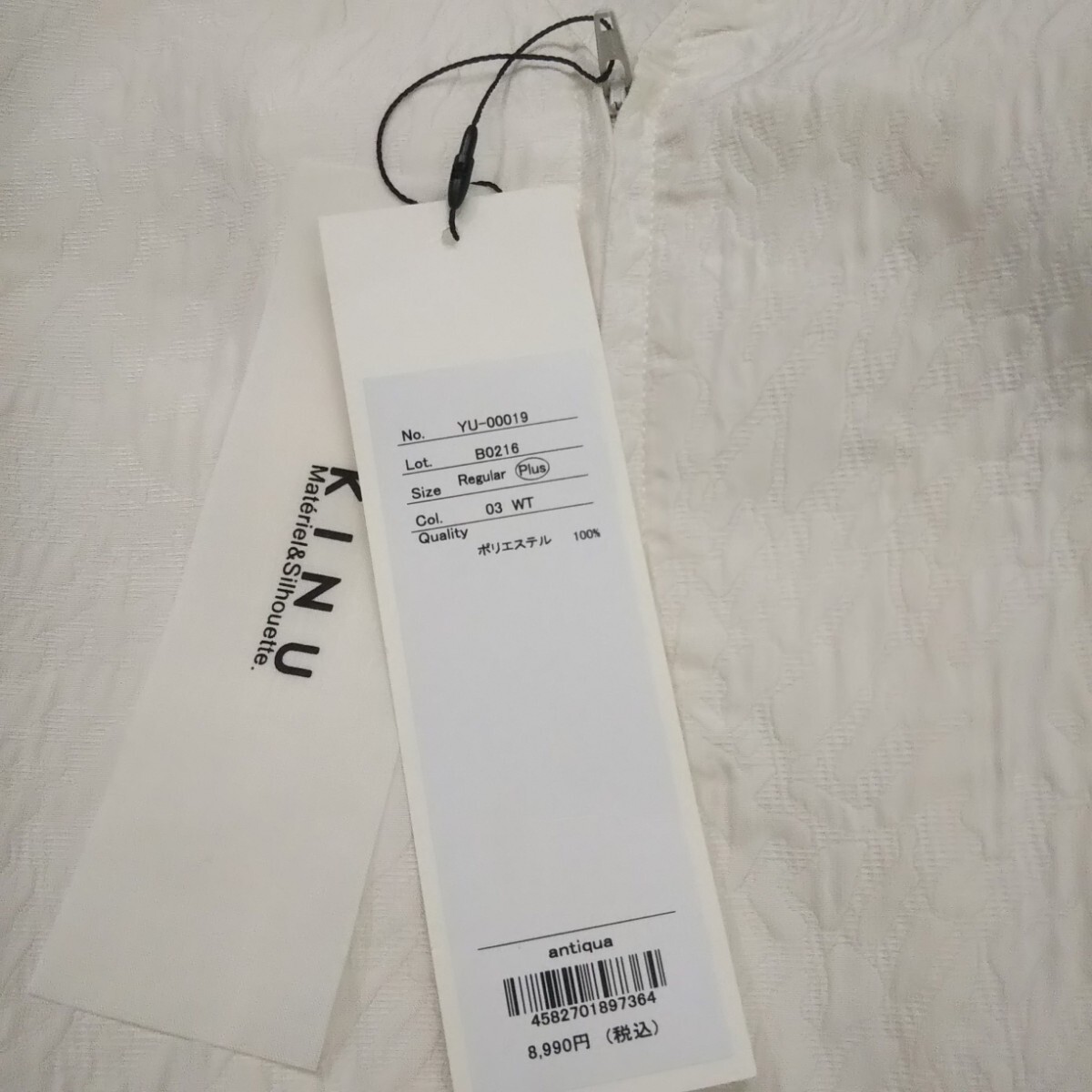 匿/ゆうパケット送込【未使用/タグ付】antiqua ジャガードジャケット ホワイト plus