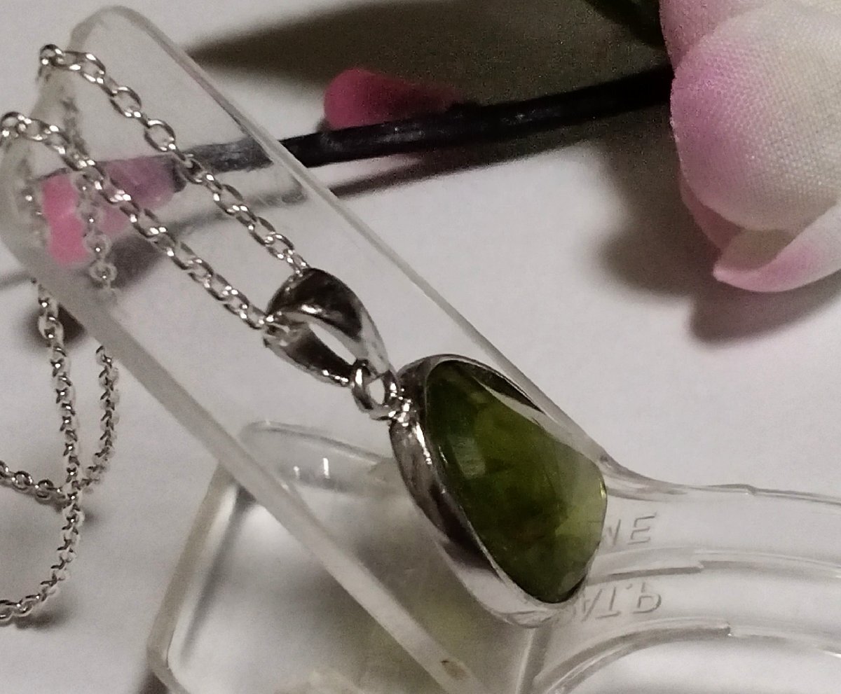 サイズ | サイズ: ◆トップの大きさは 縦約18×横約13 ×厚さ約6ミリです。 ぺリドット1石の大きさは 縦約15.7×横約13 ×厚さ約6ミリです。 チェーンは、シルバー925小豆チェーン0.35x40cmです。 |