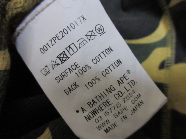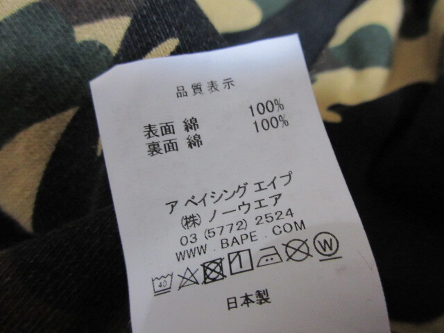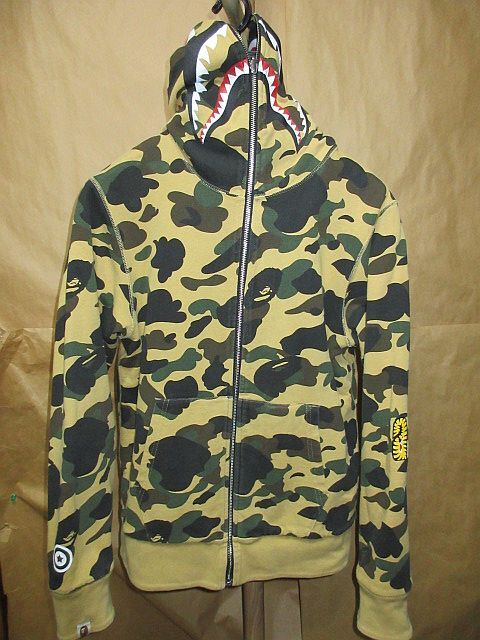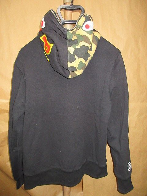 | 商品説明 | 商品状態はユーズド品で多少の汚れ、色褪せなどの使用感があります(神経質な方、新品をお求めの方は入札をお控え下さい)確実に正規品です。 サイズM、肩幅43身幅50着丈65袖丈64です(素人採寸ですので誤差はご了承下さい) 素材はコットン100、カラーはブラック×迷彩柄。 エイプらしいフードにシャークデザインの入ったジップアップパーカーです。迷彩柄とブラックのリバーシブルの希少モデル。 格安価格で出品いたしますのでお探しだった方は是非この機会にいかがでしょうか |