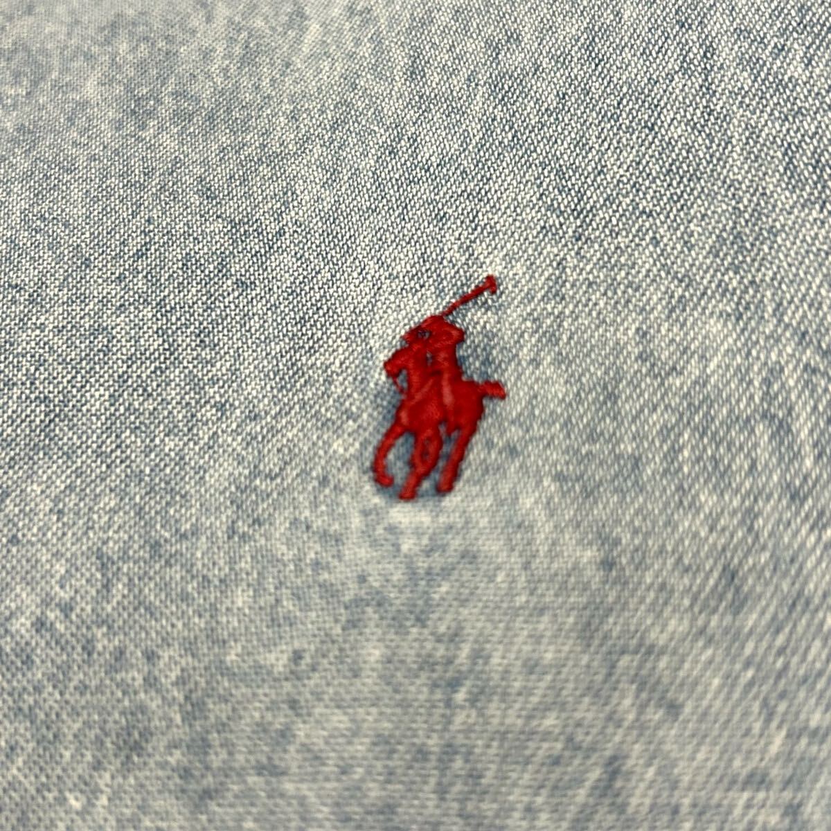 古着長袖ボタンダウンデニムシャツ 赤ポニー刺繍付き