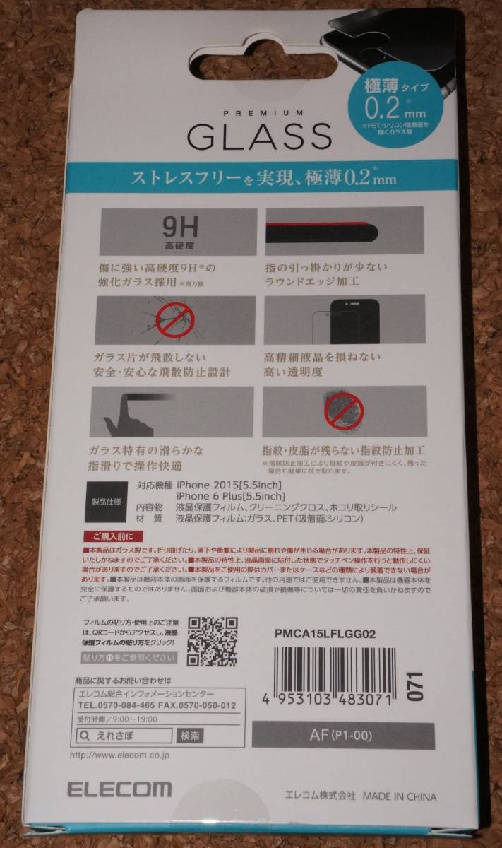 ELECOM iPhone6s Plus/6 Plus 液晶保護フィルム PREMIUM GLASS 極薄 0.2mm 9H 新品・未開封です。