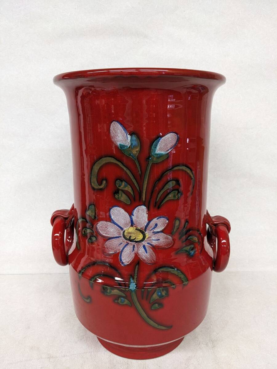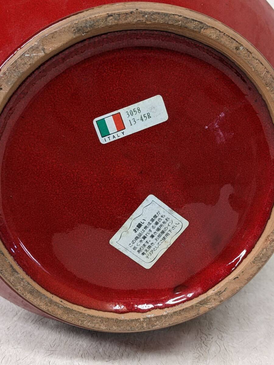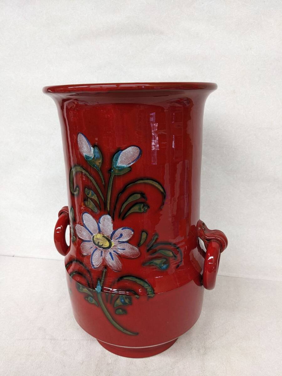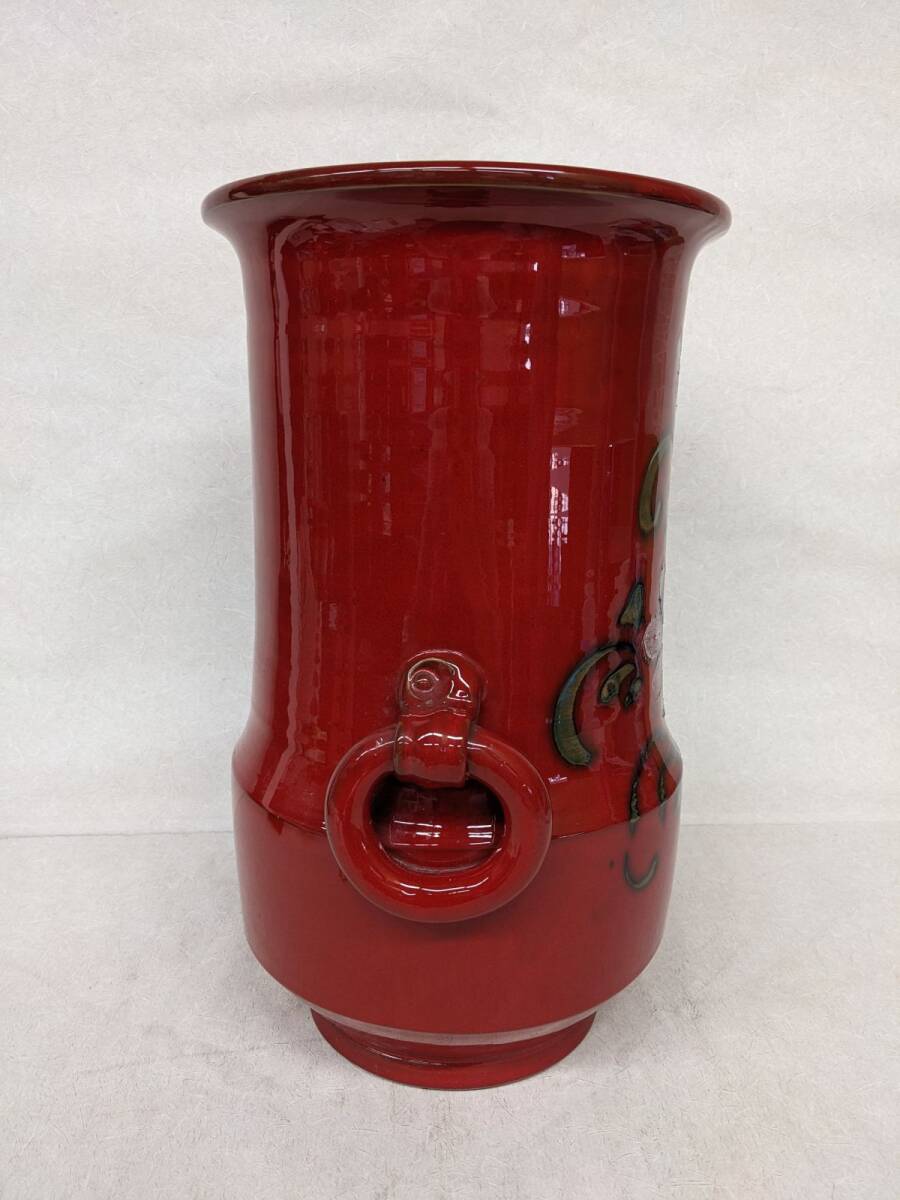 cc678● イタリア製 陶器の傘立て 壺 赤 オブジェ 双耳 手書き ハンドメイド インテリア アンティーク/100