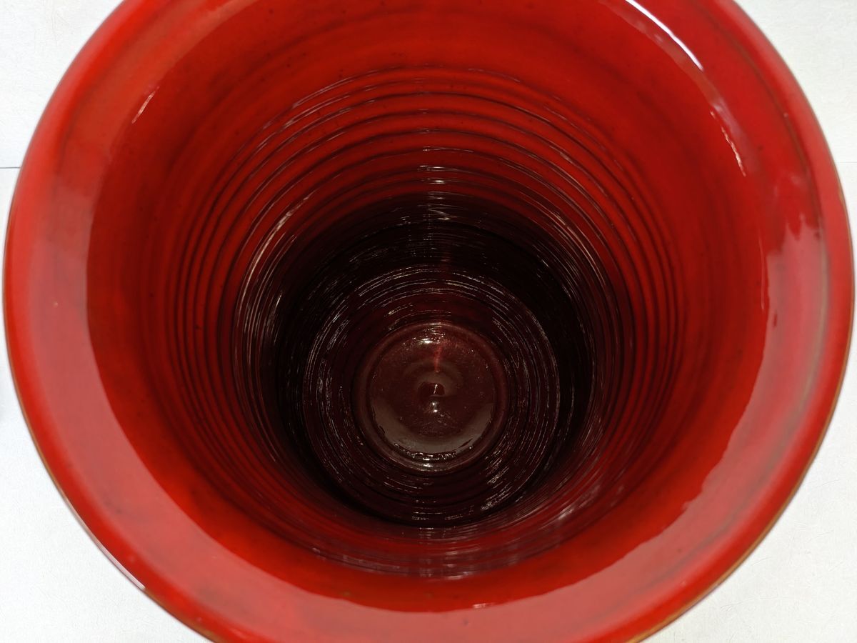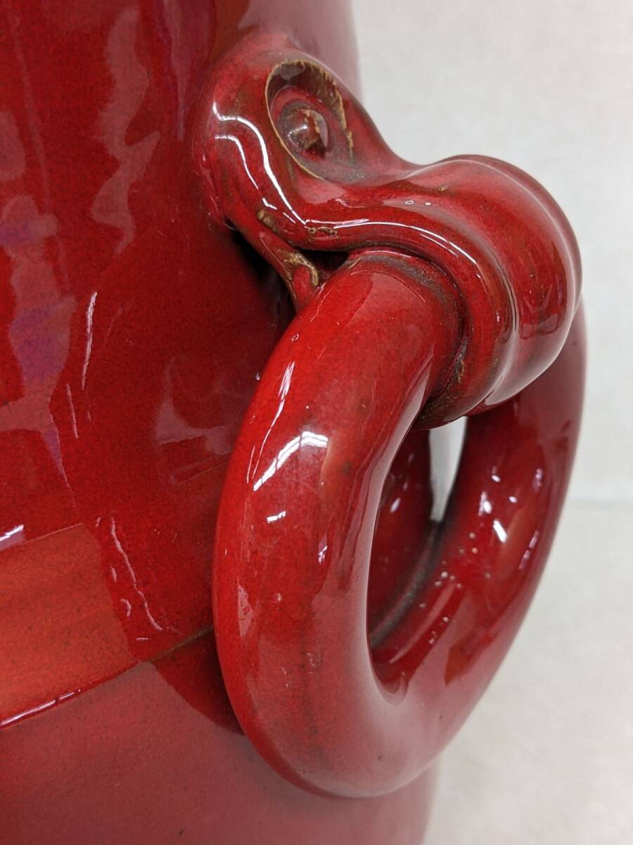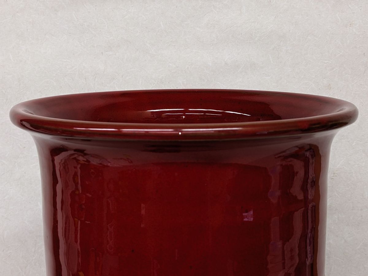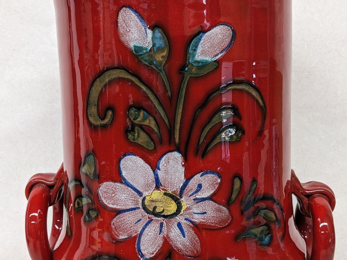 cc678● イタリア製 陶器の傘立て 壺 赤 オブジェ 双耳 手書き ハンドメイド インテリア アンティーク/100
