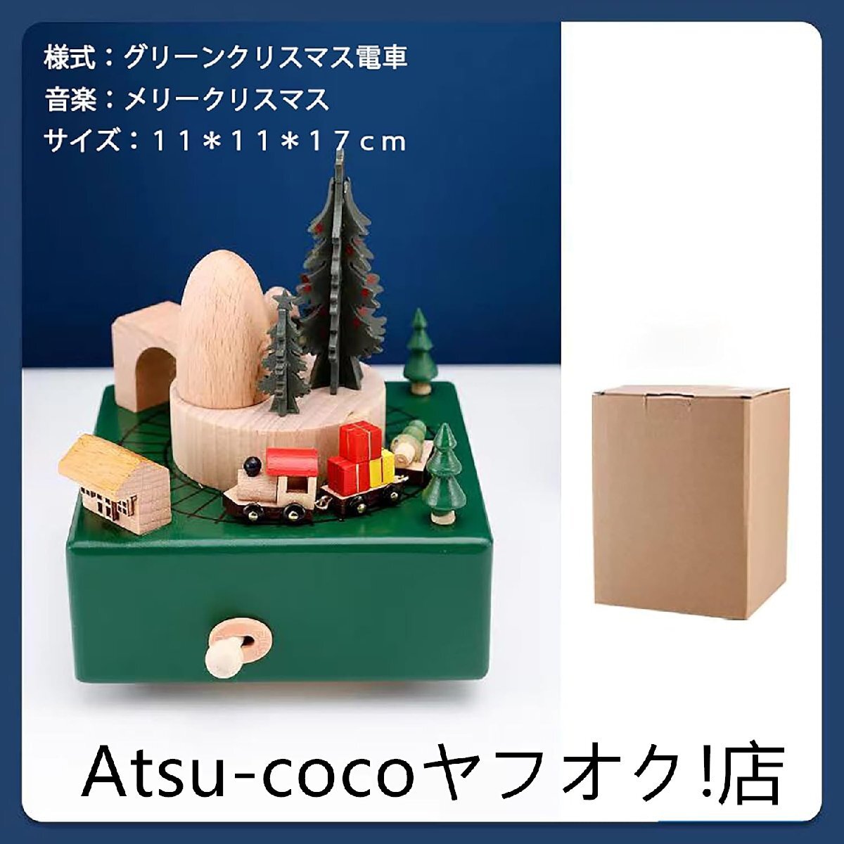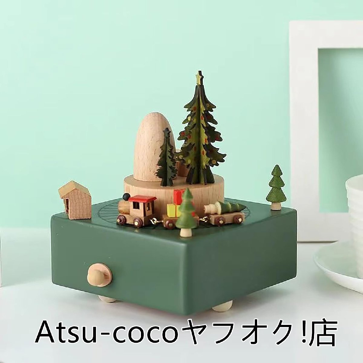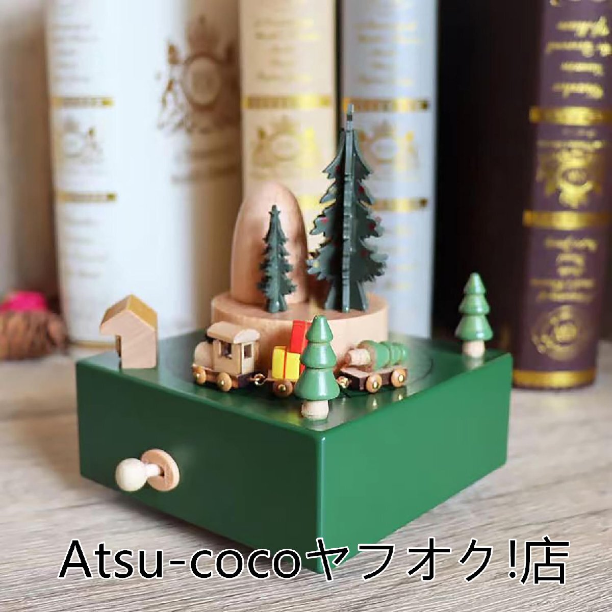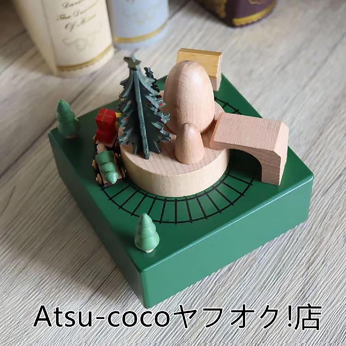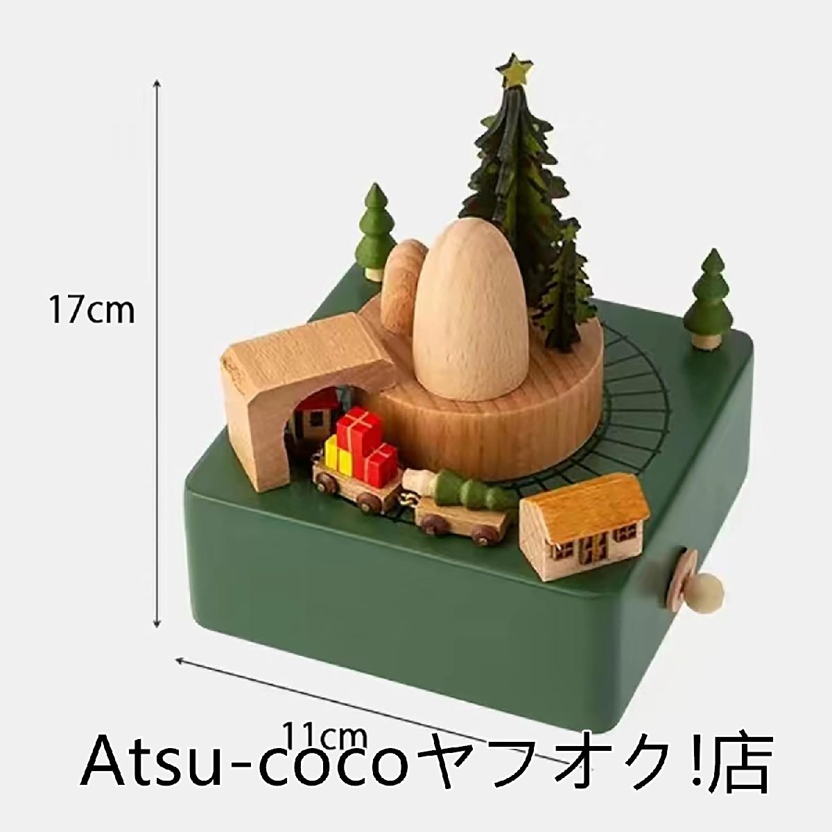 ◆人気美品◆ミュージックボックス 立体3D リアルウッド彫刻 睡眠誘導マシン 寝かしつけお 可愛い おしゃれ寝室(グリーンクリスマス電車)