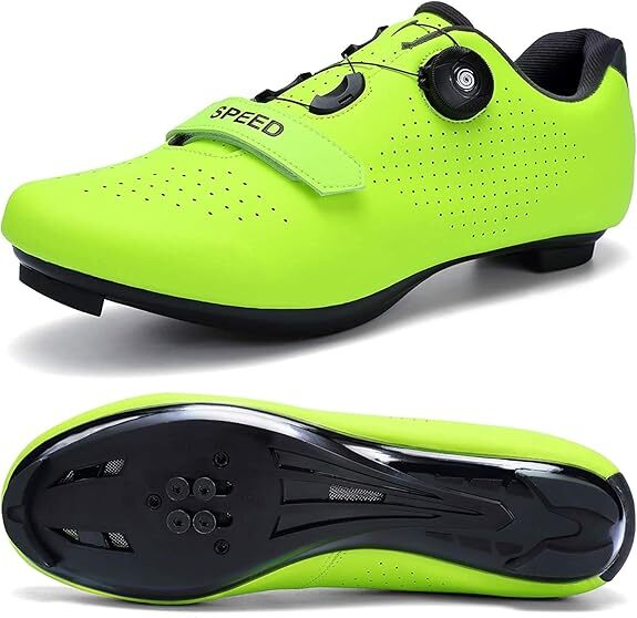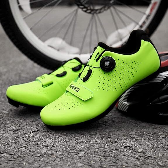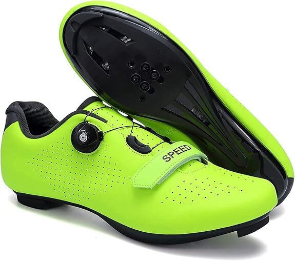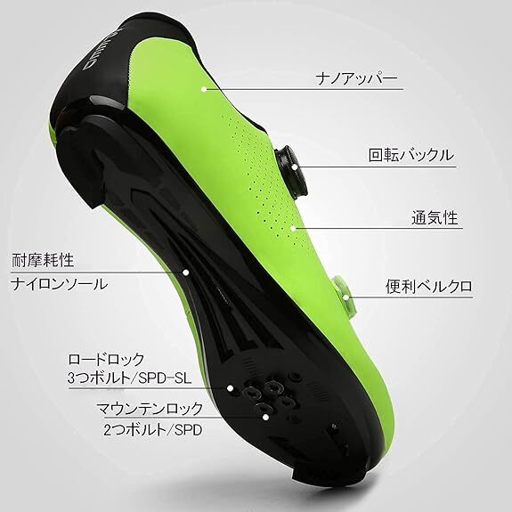 サイクリングシューズ サイクルシューズ ビンディングシューズ 自転車靴 SPD/SPD-SL両対応 快速靴紐 グリーン サイズ:27cm