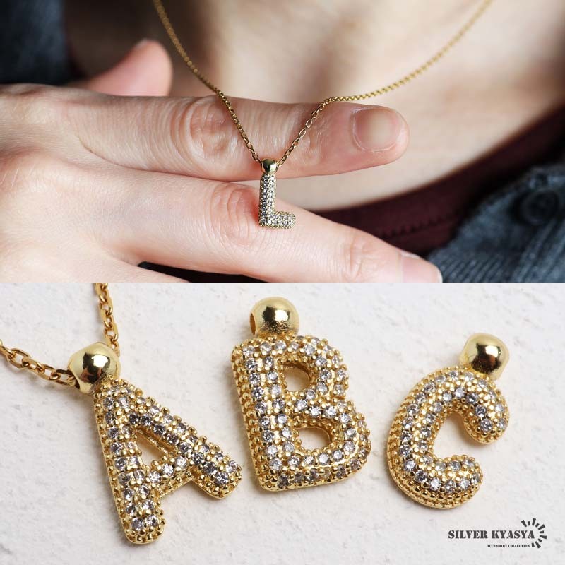 ぷっくりとしたフォルムのアルファベットが可愛いイニシャルネックレス。丁寧に敷き詰めた小粒のストーンがさりげなくキラキラと輝きます!自分へのご褒美や、大切な人への贈り物にもおすすめの一品です。