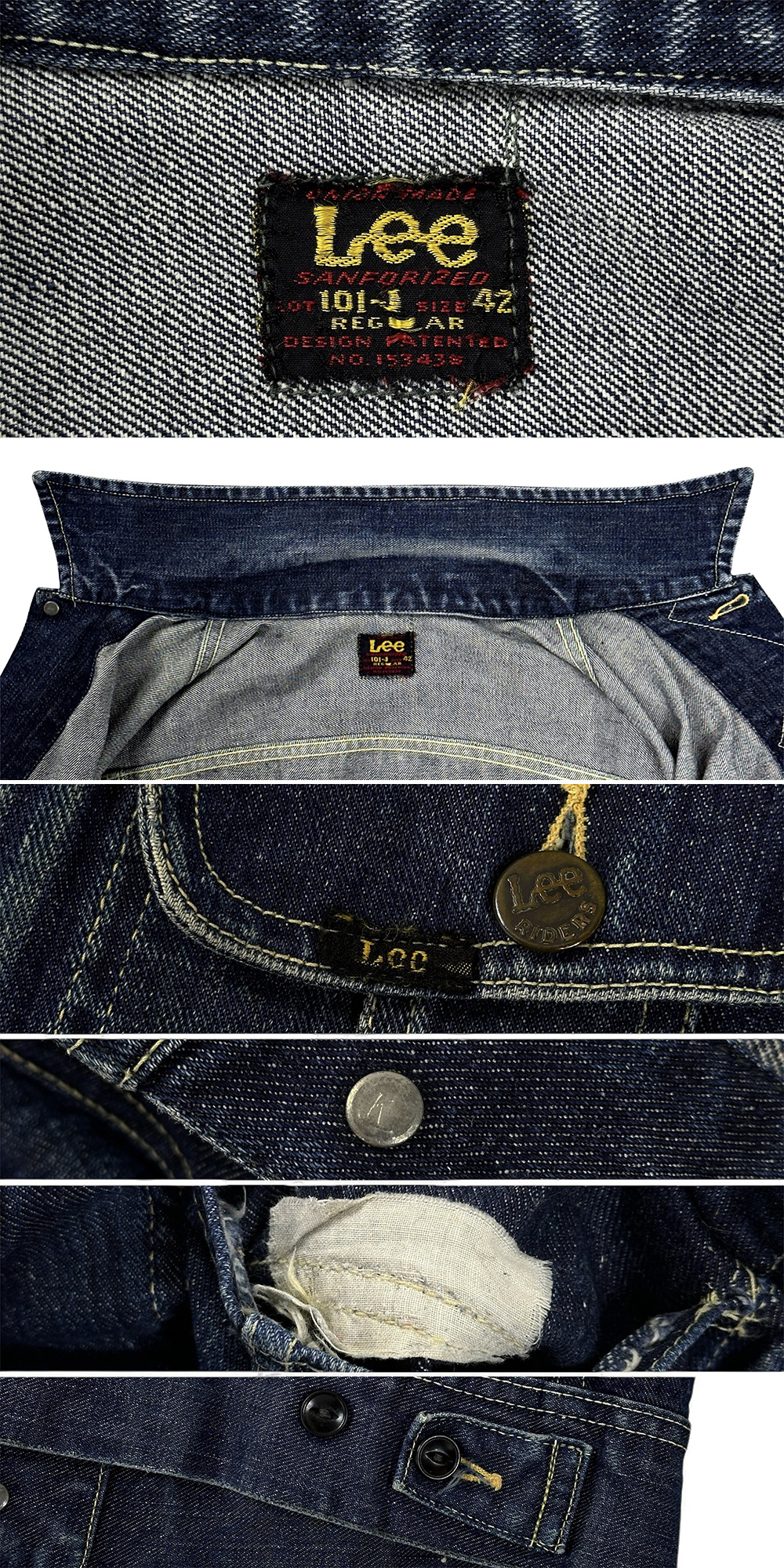 50s ビンテージ Lee 101-J 赤タグ 42 デニム ジャケット Gジャン 極上 美品 オリジナル 濃紺 インディゴ 1950年代 USA製 リー // 40s 40 44