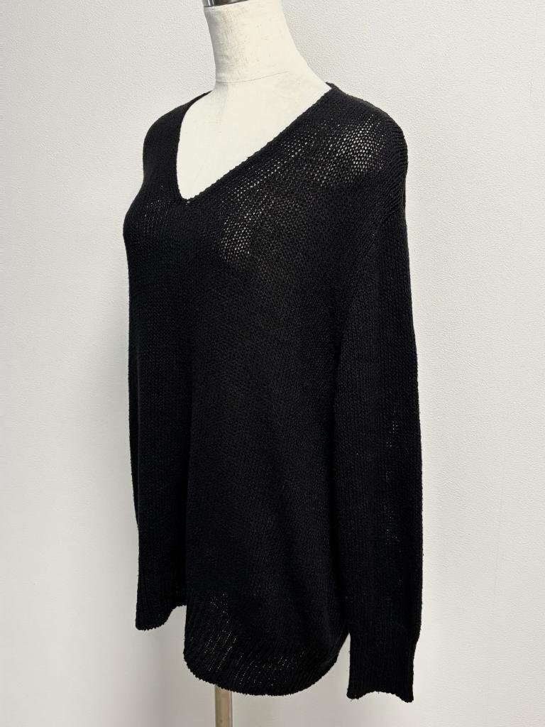 【送料込】23区 ニジュウサンク 洗える シルクリネンリリヤーンVネックプルオーバー ニット Mサイズ ブラック シンプル 6451985