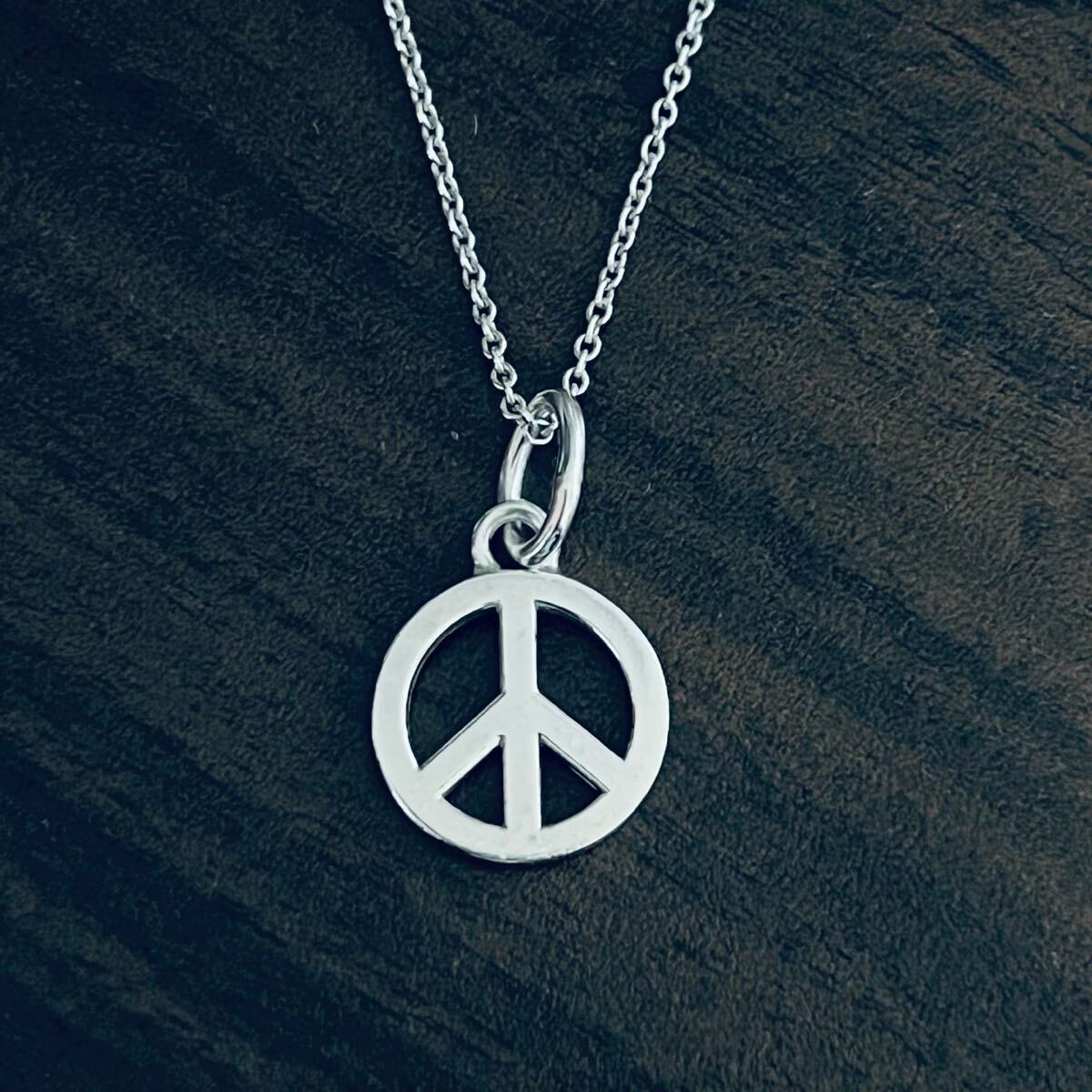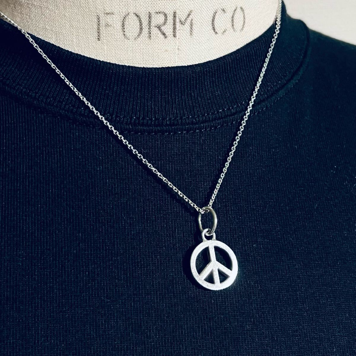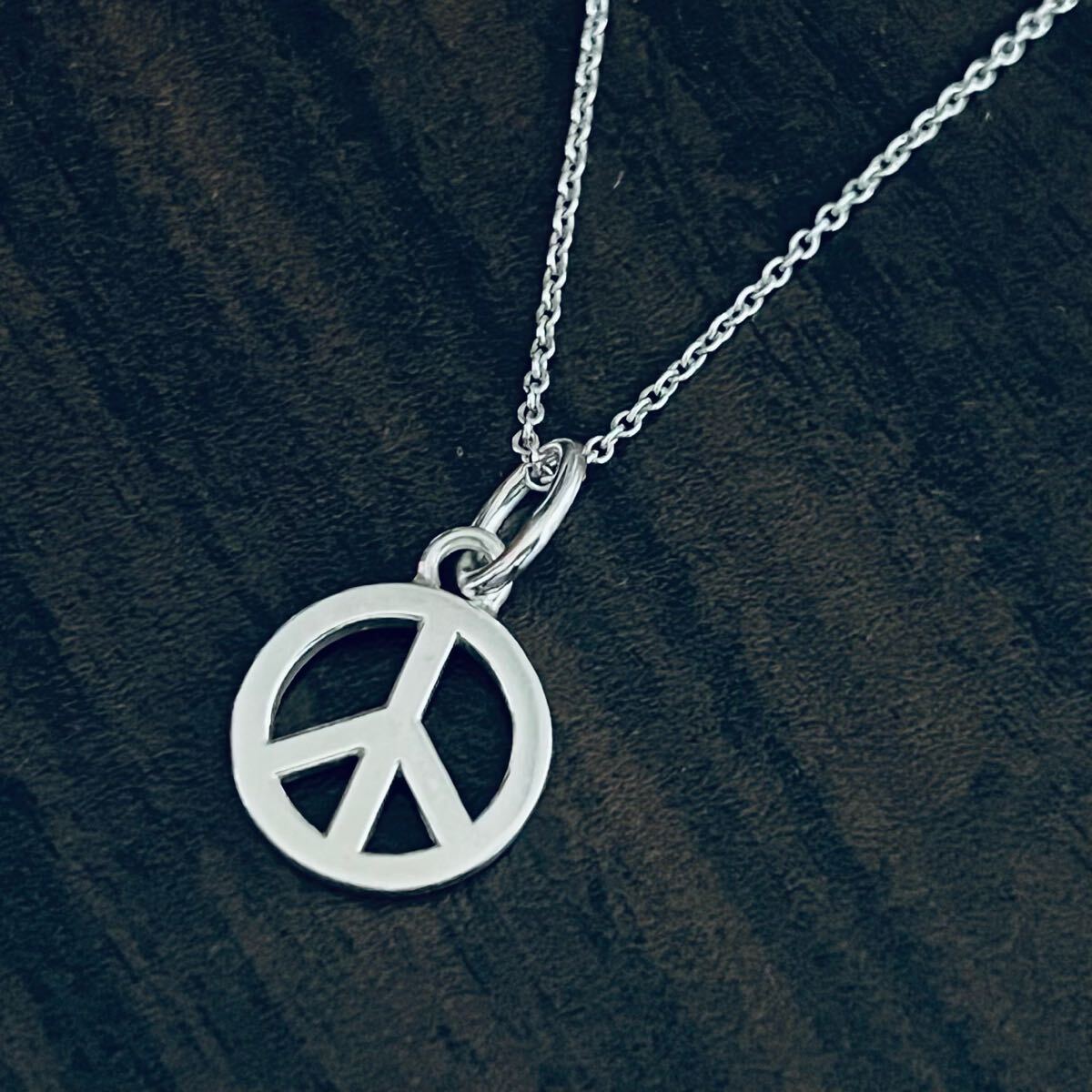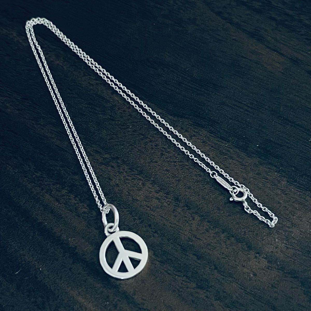 平和運動や反戦運動、核軍縮のシンボルとしても世界中で使われるピースマークのチャームをペンダント トップにセットしたティファニー製のネックレス、現在は廃盤のお品物です。