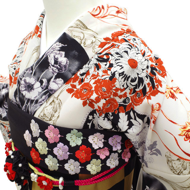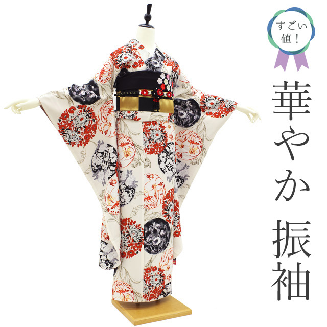 【新古品】 すごい値! 振袖 未使用 袷 京都 丸紅 ブランド 和風館 ポリエステル 洗える 着物 オフホワイト 花丸 洋花 アンティーク風 成人式 二十歳 フォーマル 仕立て上がり 身丈168 裄丈68 Lサイズ 春 秋 冬 未使用 リサイクル 振袖 二十歳 20歳 結婚式 成人式 入学式 卒業式 販売 購入 すごいね みやがわ nek01376