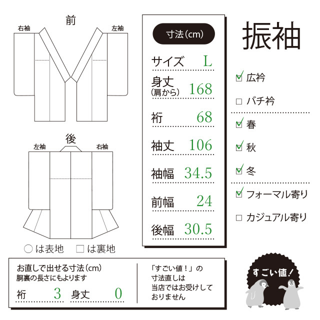 ■お着物の身丈は、身長±5cmでしたら、じゅうぶんお召し頂けます。