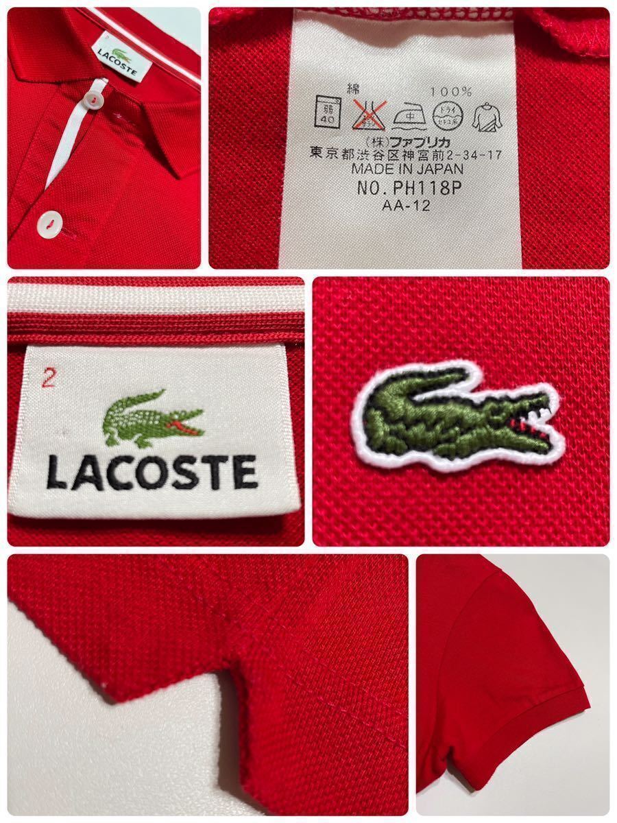 【美品】 LACOSTE ラコステ 鹿の子 ポロシャツ トップス サイズ2 半袖 赤 ファブリカ 日本製 PH118P