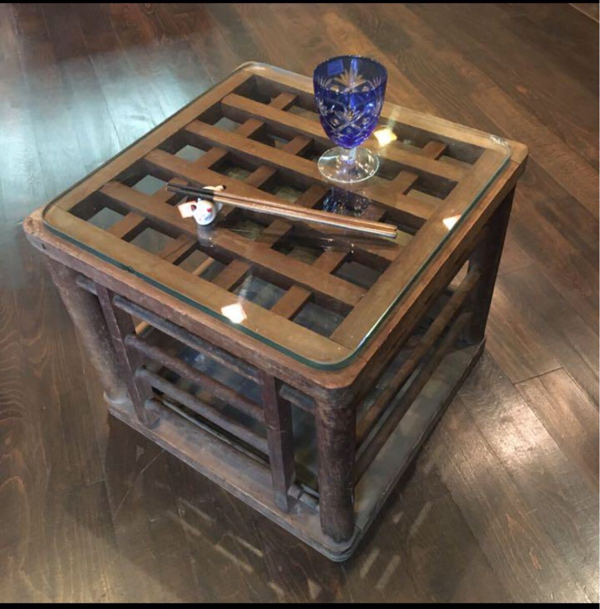 ビンテージ 櫓 テーブル★硝子 数奇 時代 古民家 骨董 粋 レトロ アンティーク 風流 風情 湘南スタイル インテリア 膳 ロハス ナチュラル