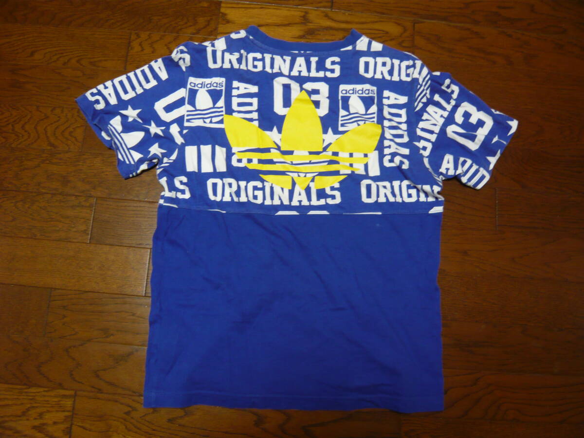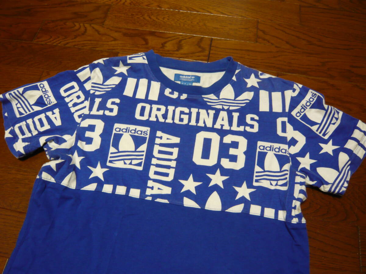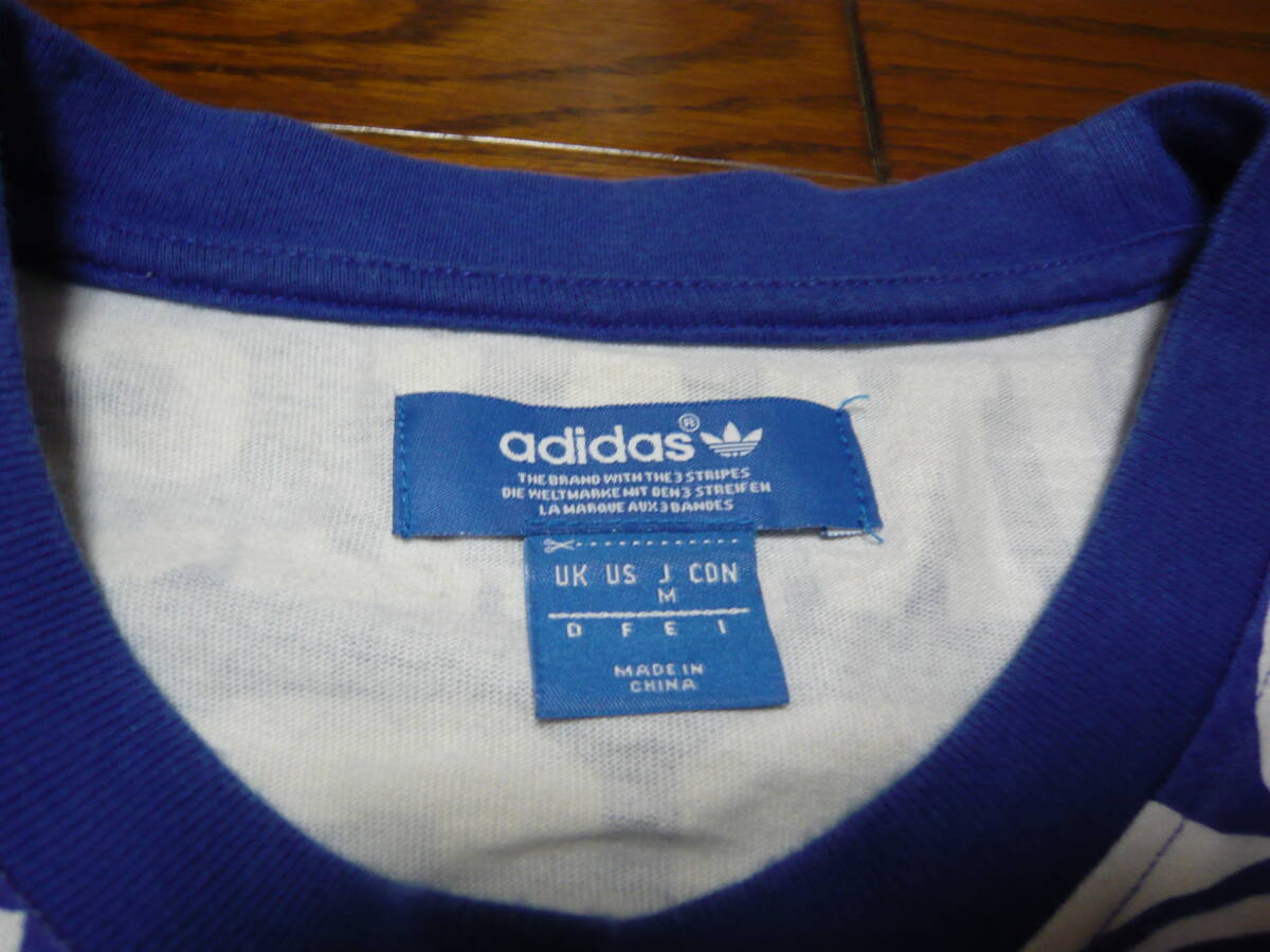 アディダスのTシャツです。サイズはMで、実寸は、肩幅約44㎝、身幅約50㎝、着丈約64㎝です。綿100%、左腰のアデイダスマークは刺繍、その他はプリントです。定形外送料320円で送ります。郵便局からの発送ですから到着までに日数がかかります。ご了承ください。NC、NRでお願いします。