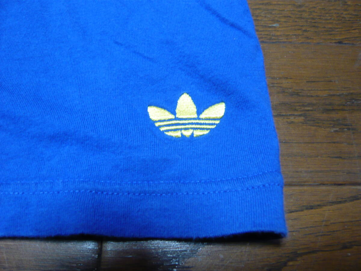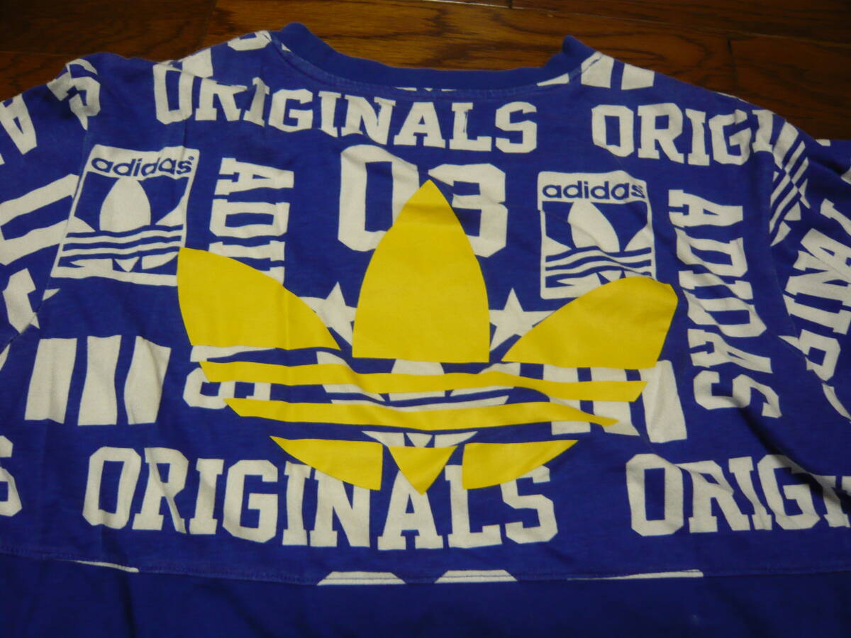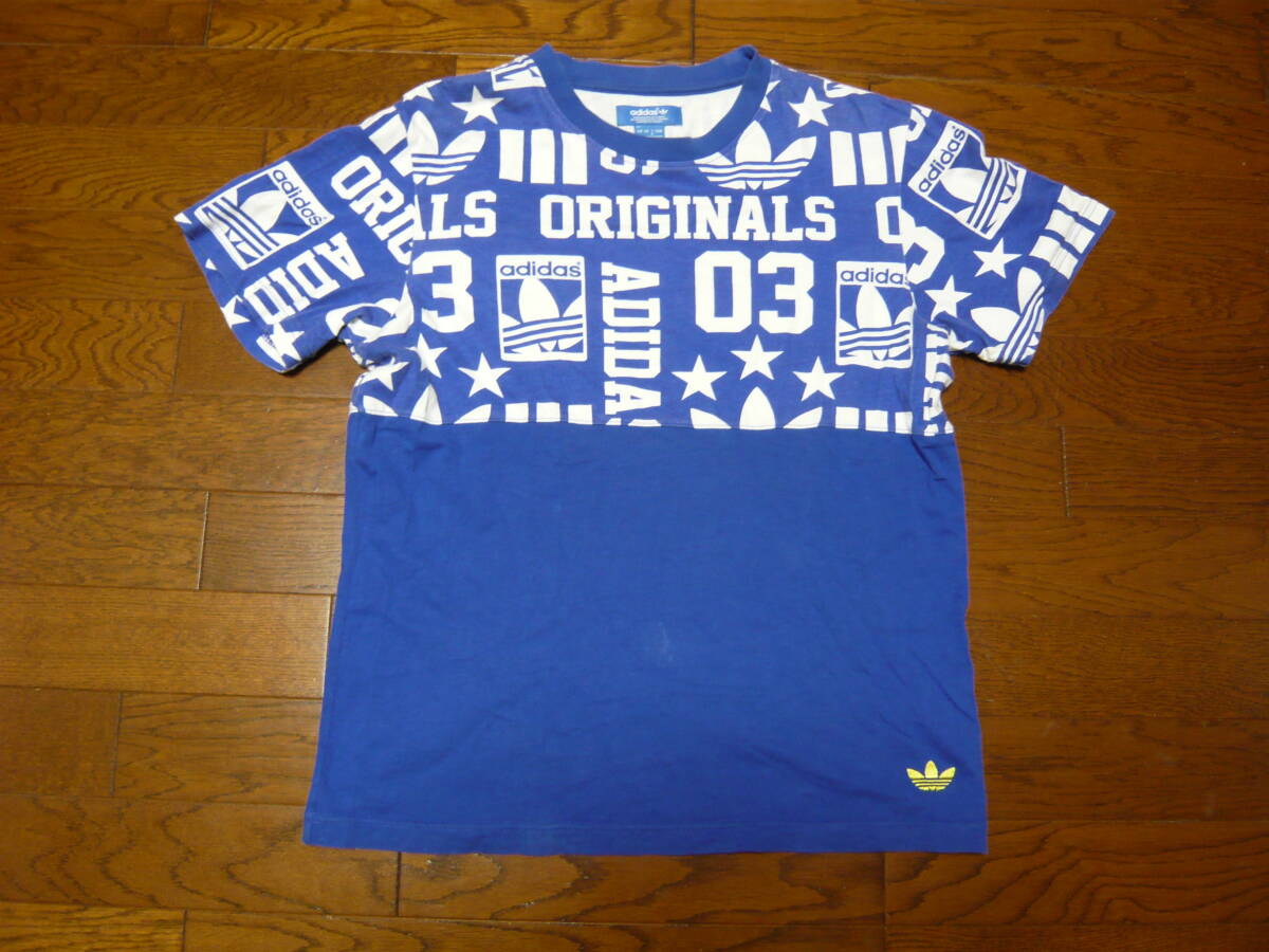 アディダスのTシャツです。サイズはMで、実寸は、肩幅約44㎝、身幅約50㎝、着丈約64㎝です。綿100%、左腰のアデイダスマークは刺繍、その他はプリントです。定形外送料320円で送ります。郵便局からの発送ですから到着までに日数がかかります。ご了承ください。NC、NRでお願いします。