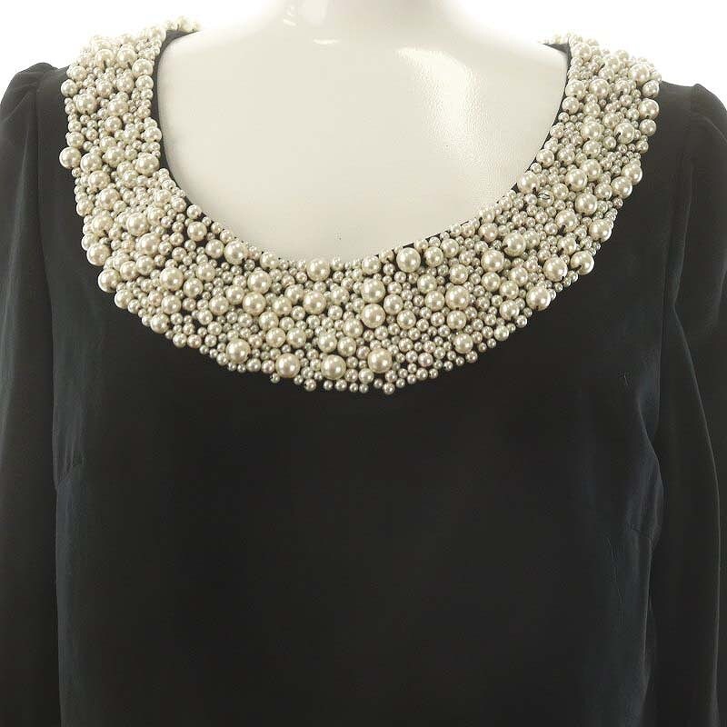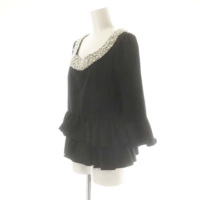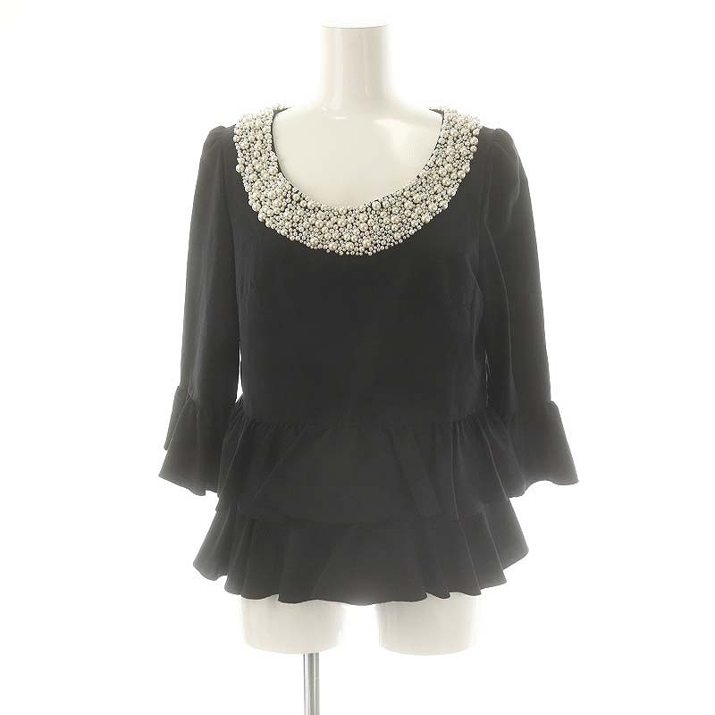 ダイアグラム グレースコンチネンタル Diagram GRACE CONTINENTAL パール フリルブラウス 七分袖 プルオーバー 36 黒