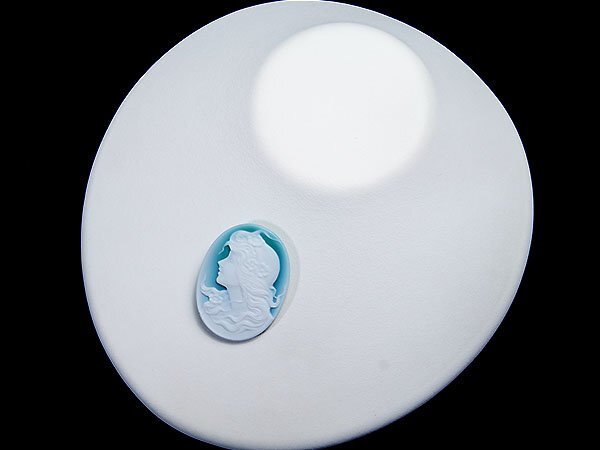 明るい表情の貴婦人の彫刻が魅力的な高級グリーンストーンカメオルースを激安価格で特別大放出致します!