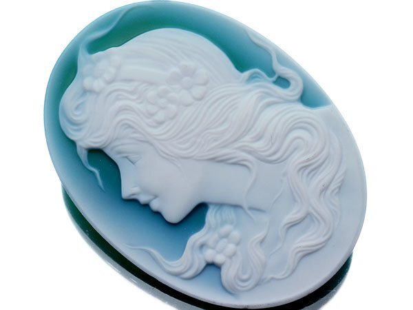 美しい貴婦人を繊細な彫刻で演出した素敵な高級グリーンストーンカメオルースです!