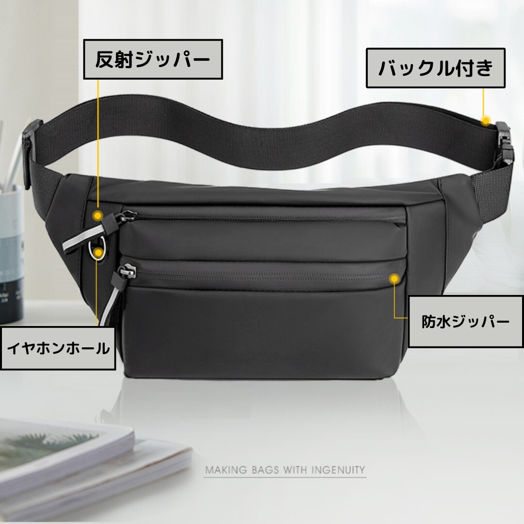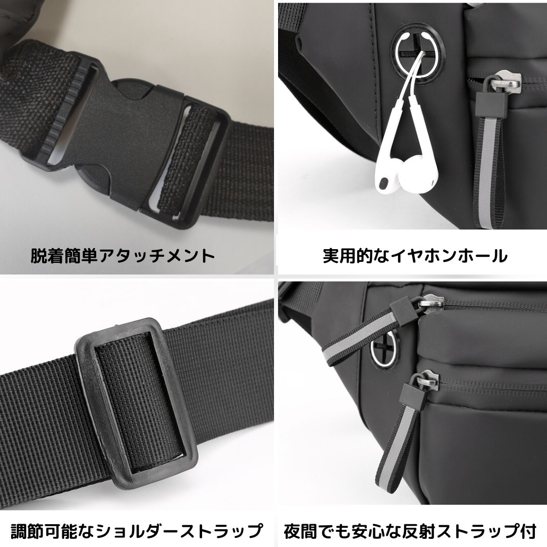 ボディバッグ、ウエストポーチ、ショルダーバッグと3WAYスタイルで、斜め掛け、肩掛けなど用途にあわせて活用可能です。