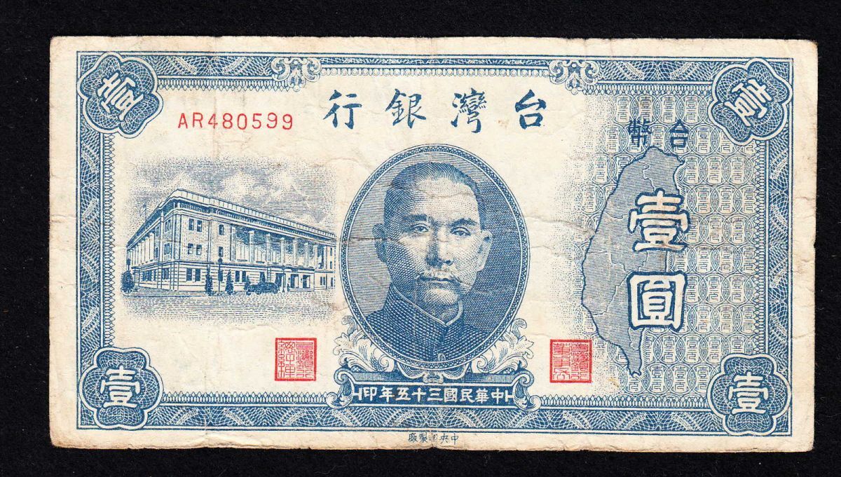 *[令和コイン]Pick#1935/中国紙幣 台湾銀行 壹圓(1946)[2540]7e7