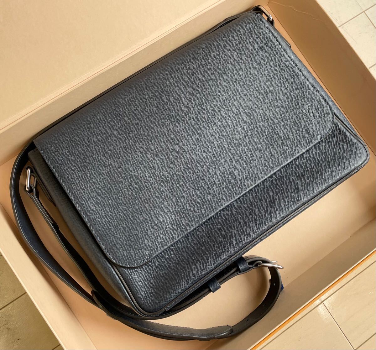 カジュアルでシンプルなデザインの中にもエレガンスが漂い、ビジネスカジュアルにもシティユースにも活躍しそうなメッセンジャーバッグ。マグネット開閉式でアクセスのしやすさが魅力。デイリーユースに最適なデザインです。定価30万円弱。