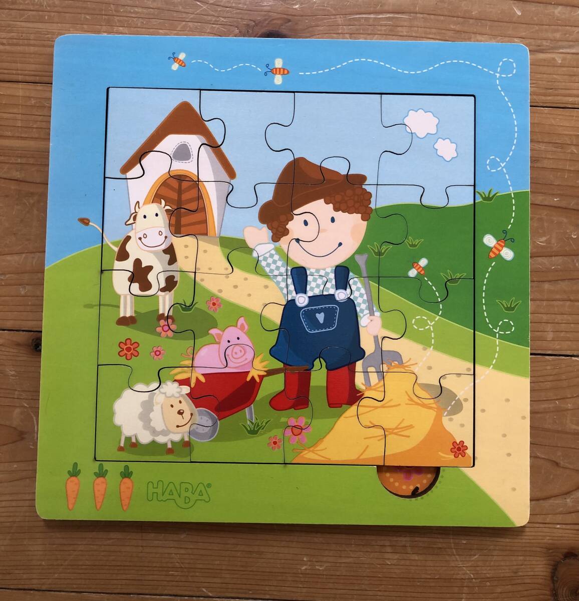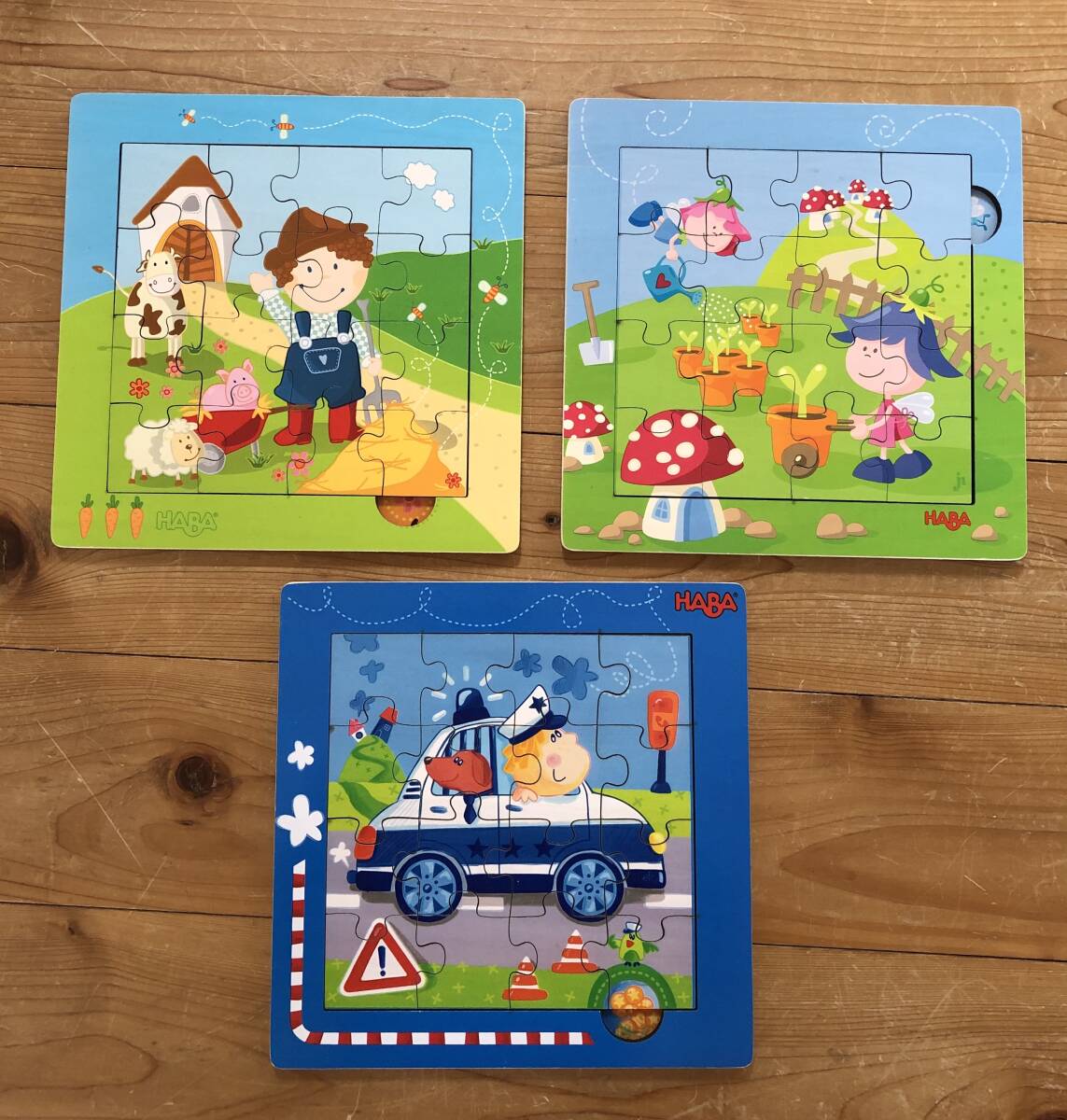 美品☆ドイツのHABA/ハバ社、お子様向け木製パズル3点セットです。