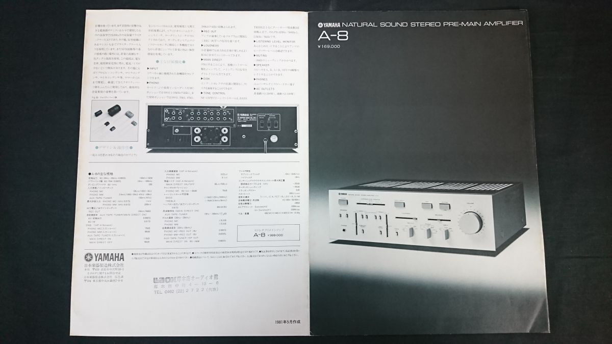 | 【昭和レトロ】『YAMAHA(ヤマハ) NATURAL SOUND STEREO PRE-MAIN AMPLIFIER(プリメインアンプ) A-8 カタログ 1981年5月』YAMAHA日本楽器製造株式会社 | |