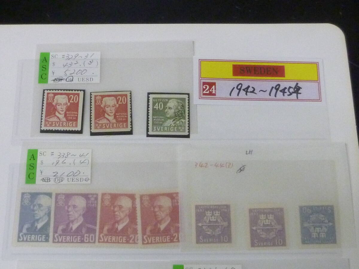 25F M №12 スウェーデン切手 1942-1945年 SC#329-359の内 計22種+ペア 未使用NH~OH・VF 【SC評価 $122】