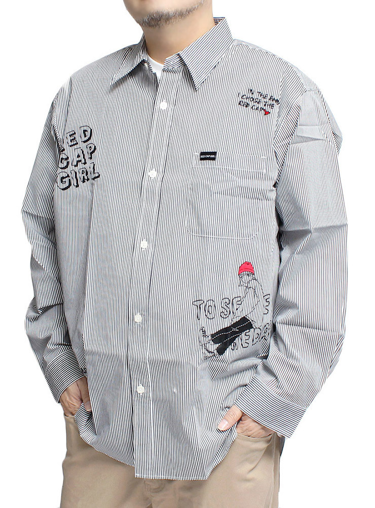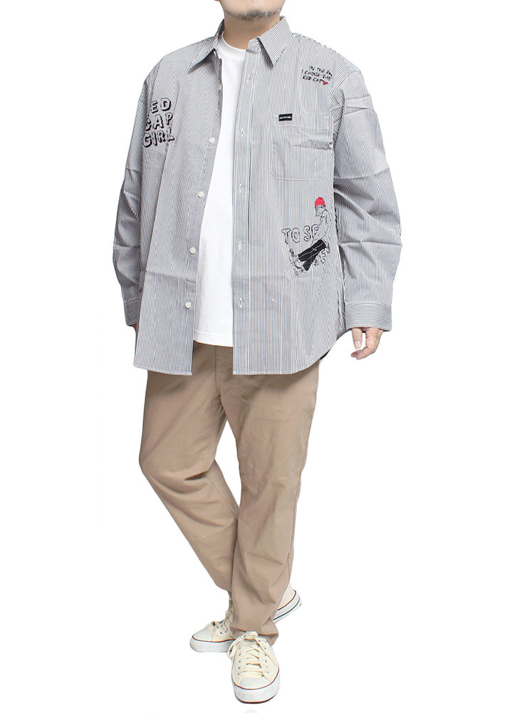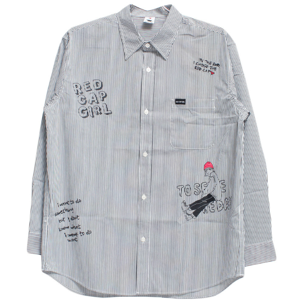 | 商品名 | 【新品】 3L ブラック RED CAP GIRL レッドキャップガール ストライプシャツ メンズ 大きいサイズ ロゴ プリント 長袖シャツ |