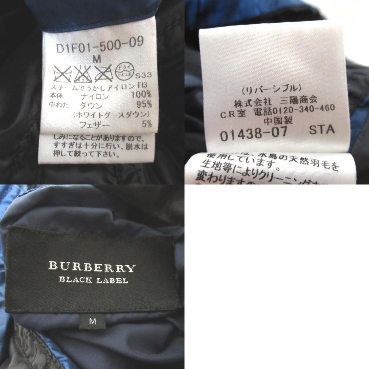 良品 BURBERRY BLACK LABEL バーバリーブラックレーベル リバーシブル フーディー ナイロン ダウンジャケット M ブルー ブラック