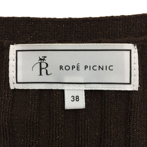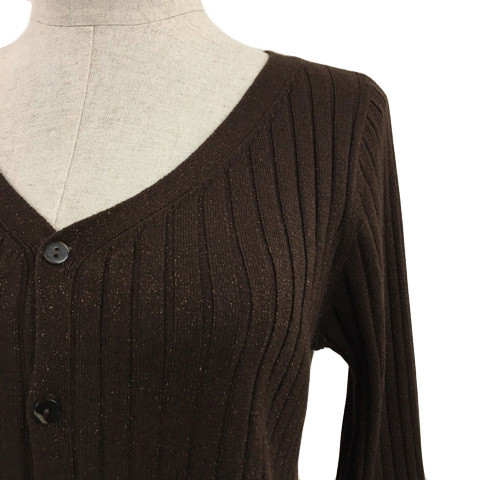 ロペピクニック ROPE Picnic カーディガン ニット Vネック リブ ラメ 無地 長袖 38 茶 ブラウン レディース