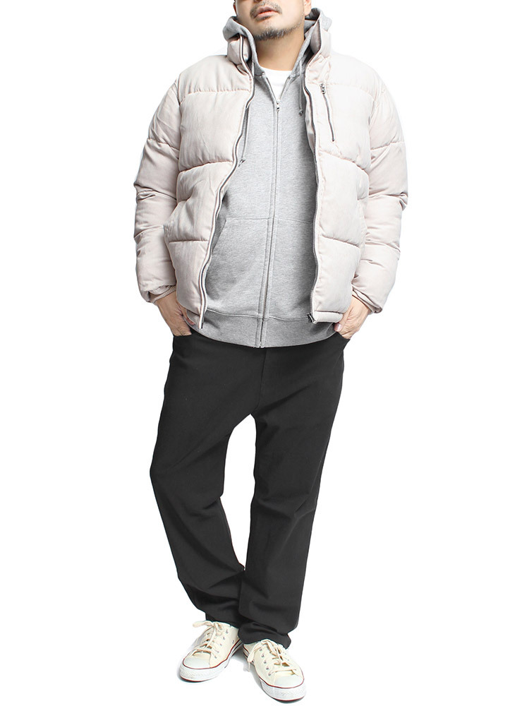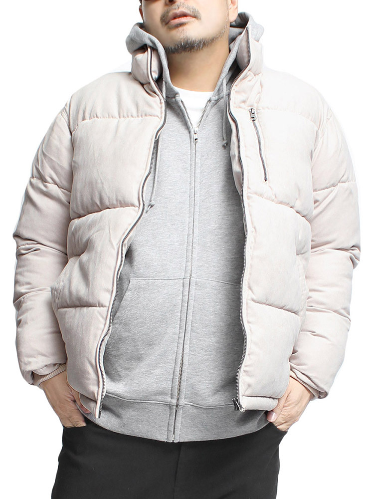 商品名 | 【新品】 2L アイボリー 中綿ジャケット メンズ 大きいサイズ ウールタッチ 防寒 フード脱着 アウトドア ボリュームネック スタンド ブルゾン |